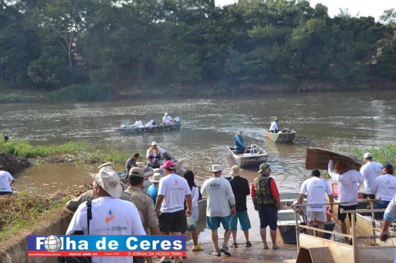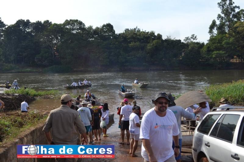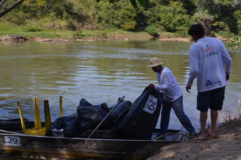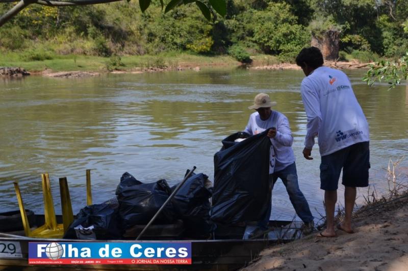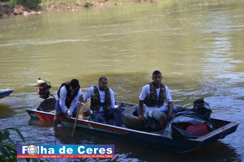 Ceres coleta de lixo flutuante no Rio das Almas