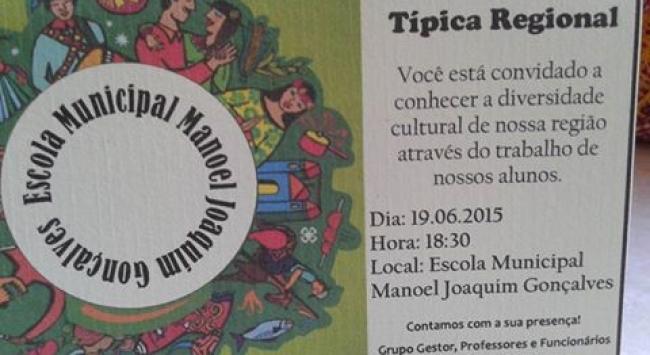 culturaEscola Municipal Manoel Joaquim Gonçalves recebe hoje pais de alunos e a comunidade para desfrutar de uma belíssima festa típica regional.