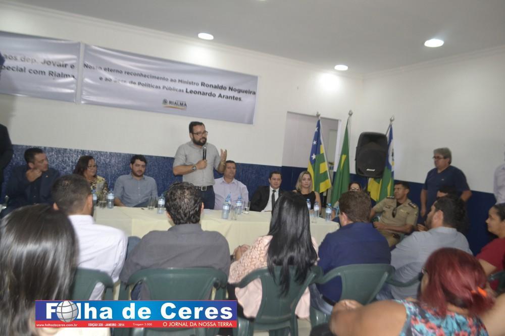 Com presença de sua Mãe e Secretária de Obras Dorcas Vidigal, Vice Prefeita Vera Lúcia, Chefe Administrativo da Agência do Trabalho de Rialma Ivan Costa Silva, Presença do Deputado Estadual Henrique Arantes, o Superintendente Regional do Trabalho em Goiás Degmar Jacinto Pereira, Secretário de Políticas e Emprego do Ministério do Trabalho e representando Jovair Arantes o seu sobrinho Deputado Leonardo José Arantes, o Secretário de Políticas e Emprego Leonardo Soares, Assessor do Ministério do trabalho e Emprego Maurício Moreira, Representando a OAB Ceres/Rialma Dra. Eduarda Miranda, Representando a Polícia Militar Major Lopes, Vereadores, Secretários, representantes da comunidade e moradores do município foi dado início a solenidade de inauguração.