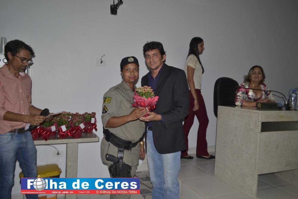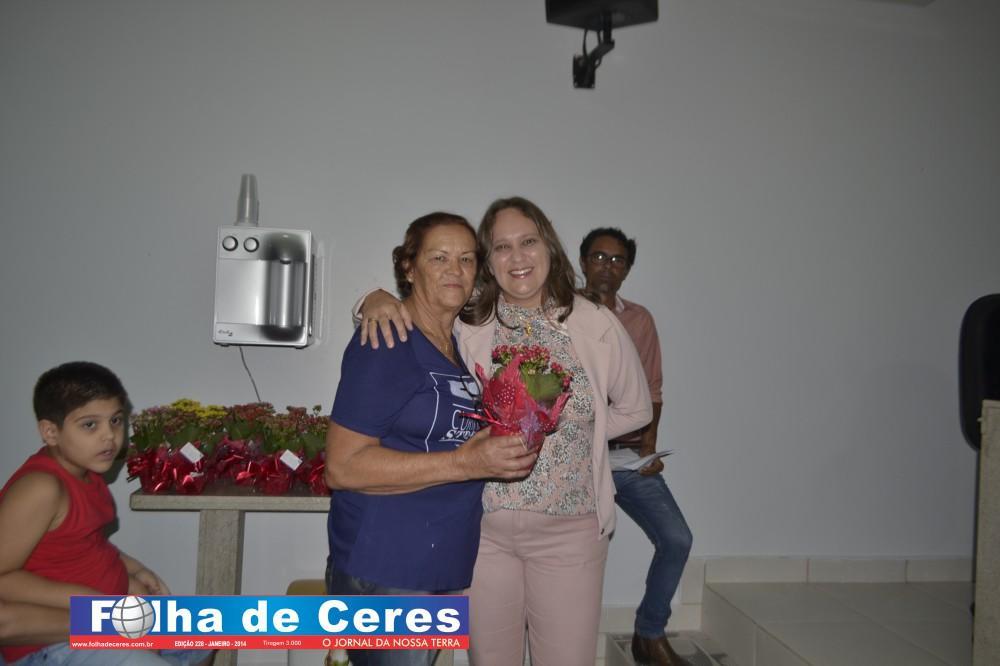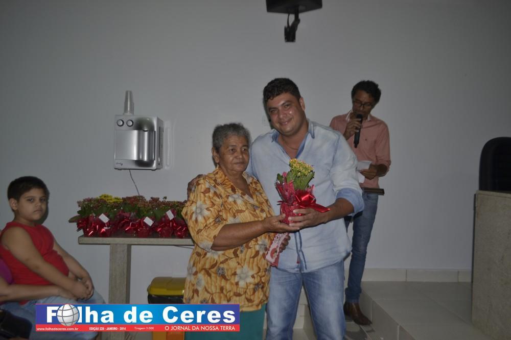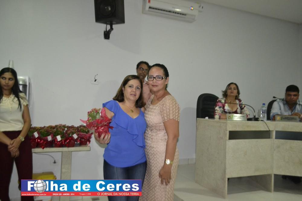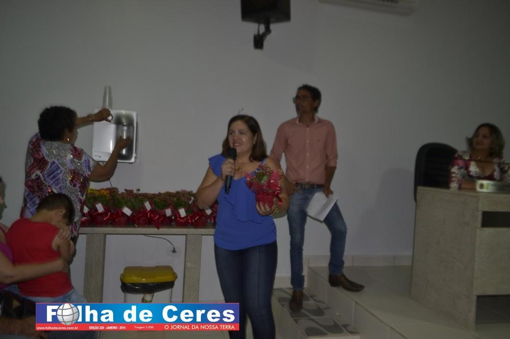 Na oportunidade a Vereadora Presidente Telma Barbosa iniciou a solenidade entregando uma flor a homenageada Ivone Rosa de Paiva, os demais vereadores contribuíram homenageando as demais mulheres do município que se fizeram presentes; Geane Cristina, Terezinha Andrade Tavares, Rosina Pedroso, Ex Vereadora Maria Vilma, Maia Helena (popular “Fia”), Maria José, Sônia de Fátima, Dra. Renata Andrade Brandão, Ex Vereadora Vanda Campos, Ex Primeira Dama do município Messias Borges, Ex Vereadora Rosa Maria, Ivonete Lacerda, Divina Lemes, Geralda Francisco Pinheiro, Enileuda Rodrigues, Dra. Ana Cláudia Andrade ( representada por Renata Andrade), Aparecida Xavier, Wilciene Soares, Gabriella Moura, Rosimeire Soares, Ana Joana, Neusleide Rissat, Regina Gouveia, Simone Marcielly, a Primeira Dama do Município Ivonete Rosa de Paiva, Maria Letícia representada pela senhora Carolina Tavares; a Ex Vereadora Rosa Maria foi convidada a homenagear a Vereadora Lucely Gomides o Vereador Gilber Miranda fez a entrega de uma flor a Vereadora Jouse Ribeiro. Por fim a Presidente da Câmara Telma Barbosa fez a entrega de uma flor a Pastora Maria Antônia.