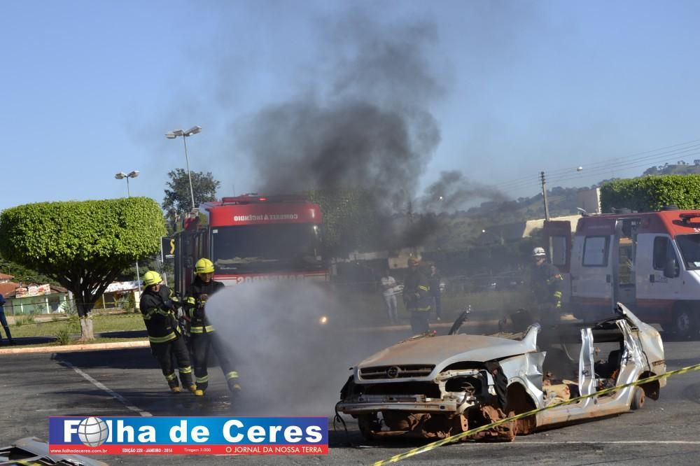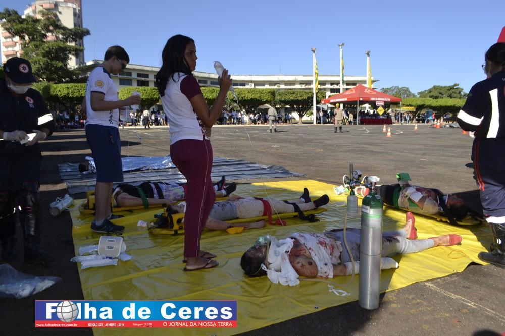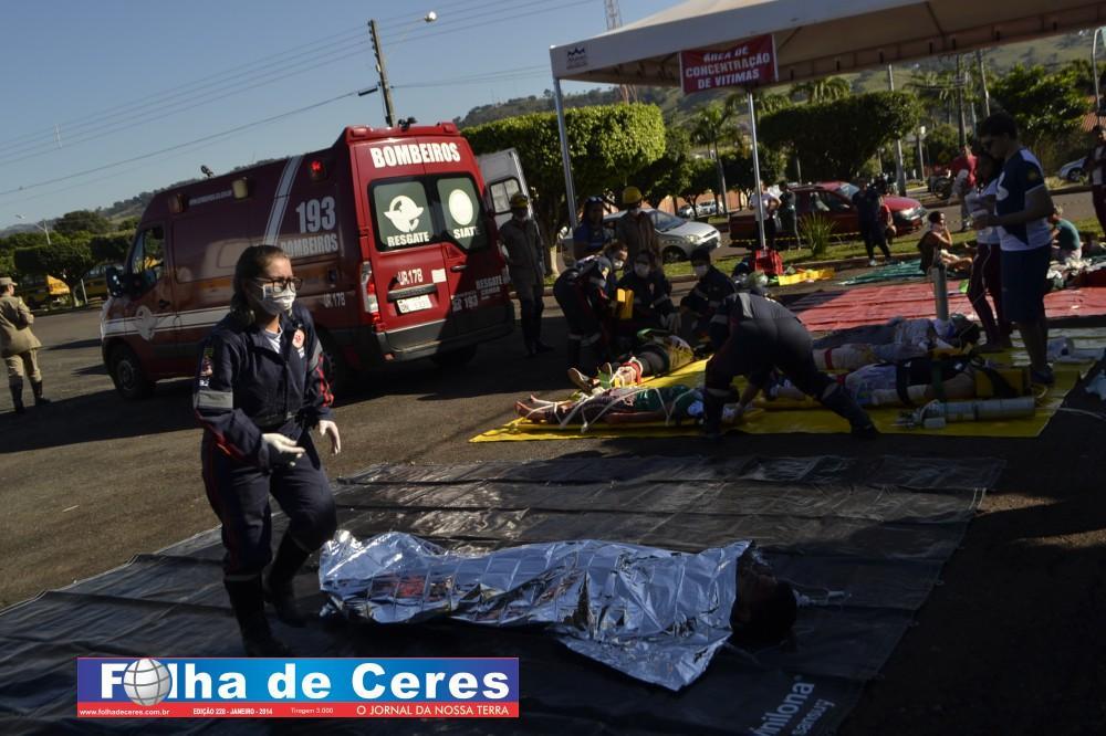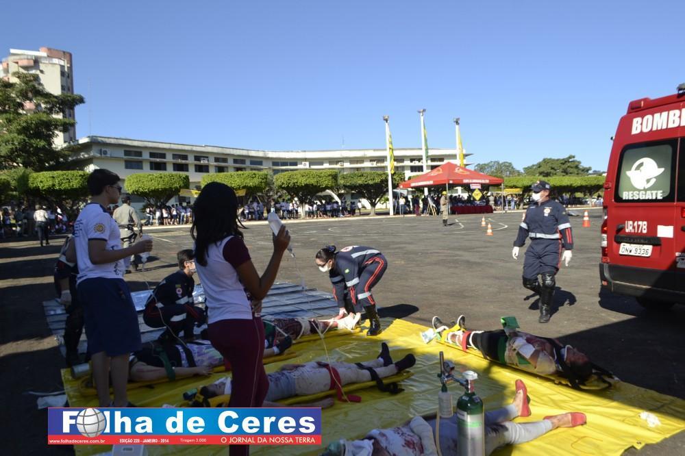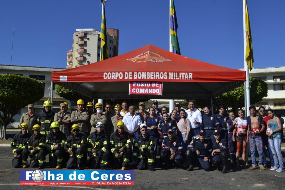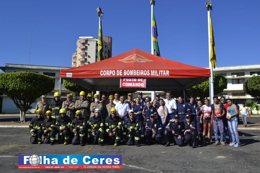 Na ação, obtiveram o apoio dos alunos de enfermagem da UEG de Ceres que fizeram uma encenação de vítimas em um acidente envolvendo um ônibus escolar e um veículo em chamas. Em todo o momento, todas as equipes trabalharam em conjunto, como se fosse um acidente verídico. Mostrando a população presente, os cuidados e maneiras de se portar frente a situação. O trabalho ágil que deve ser concluído com parcerias e sem falhas com as vítimas; a destreza na busca de ganhar tempo e salvar vidas.