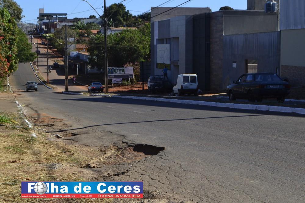 Buraco na Avenida Bernardo Sayão em Rialma coloca em risco a vida de ciclistas e motociclistas.