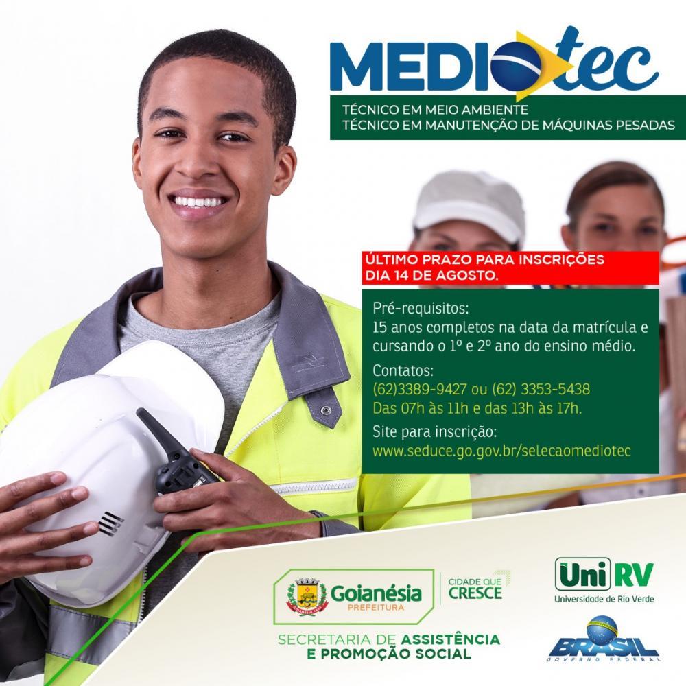 A Prefeitura de Goianésia por meio da Secretaria Municipal de Promoção Social e em parceria com a Universidade de Rio Verde (UniRV), está com as inscrições abertas para os cursos de Técnico em Meio Ambiente e Técnico em Manutenção de Máquinas Pesadas. As inscrições podem ser feitas na Secretária de Educação, até o dia 14 de Agosto.