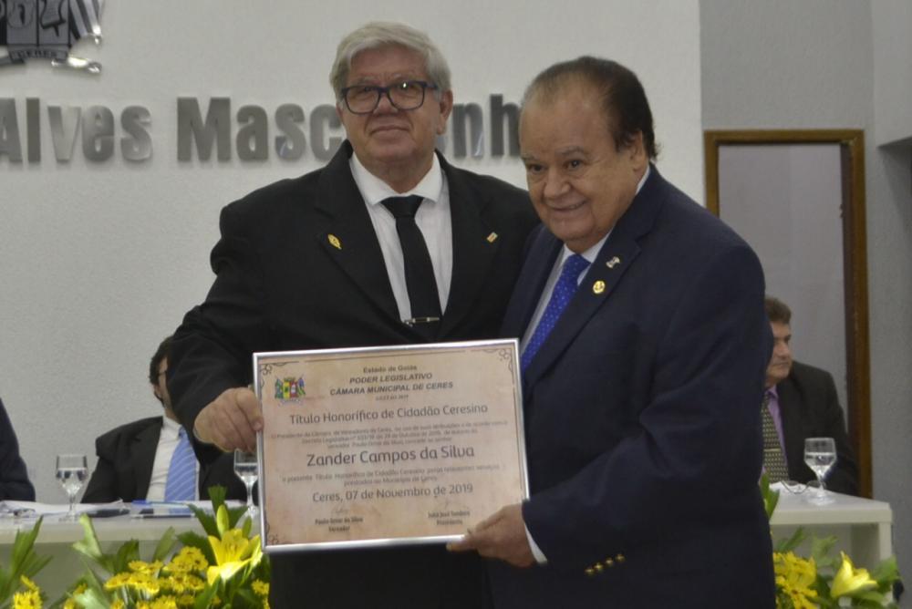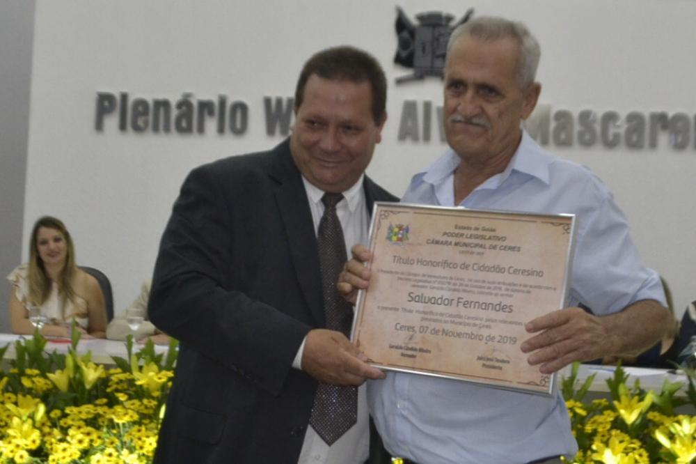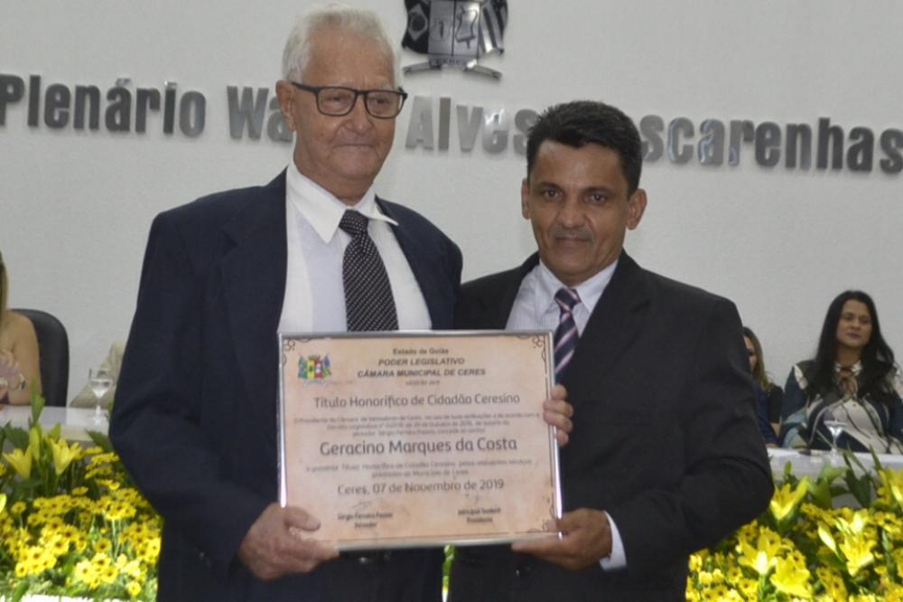 É função do Vereador além de propor Leis e fiscalizar as ações do Executivo Municipal, também reconhecer aqueles que contribuem de maneira efetiva para o crescimento e engrandecimento de seu município. Com base nessas prerrogativas surgiu na cidade de Ceres as homenagens da Câmara Municipal de Ceres . Por meio da concessão de honrarias destituído na Lei Orgânica o Título Honorífico de Cidadão ceresino que, visa homenagear personalidades nascidas em outras cidades, mas que se instalaram em Ceres e prestaram relevantes trabalhos a comunidade. A concessão deste título honorífico é de competência privativa da Câmara Municipal de Ceres, valorizando os cidadãos que prestam ou prestaram suas contribuições a toda a comunidade.