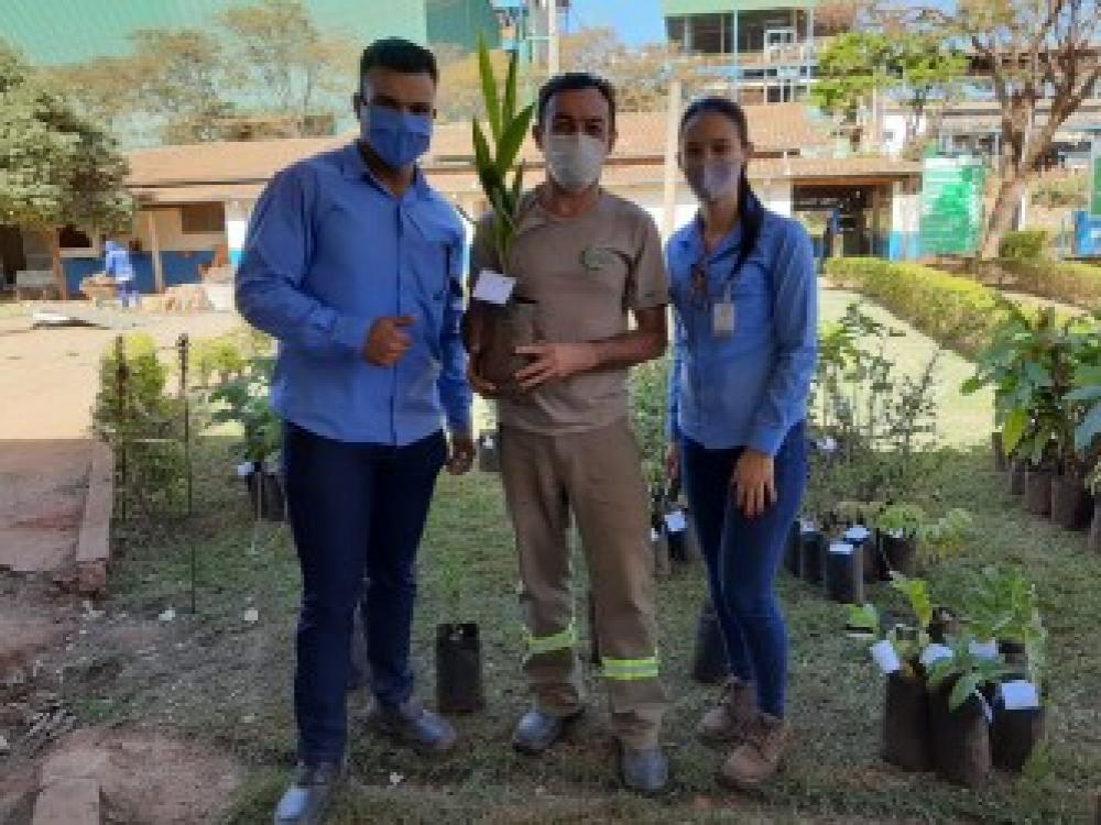 Todas as mudas são produzidas pelo Departamento Ambiental no viveiro da unidade e faz parte das ações de preservação do meio ambiente adotadas pela empresa.