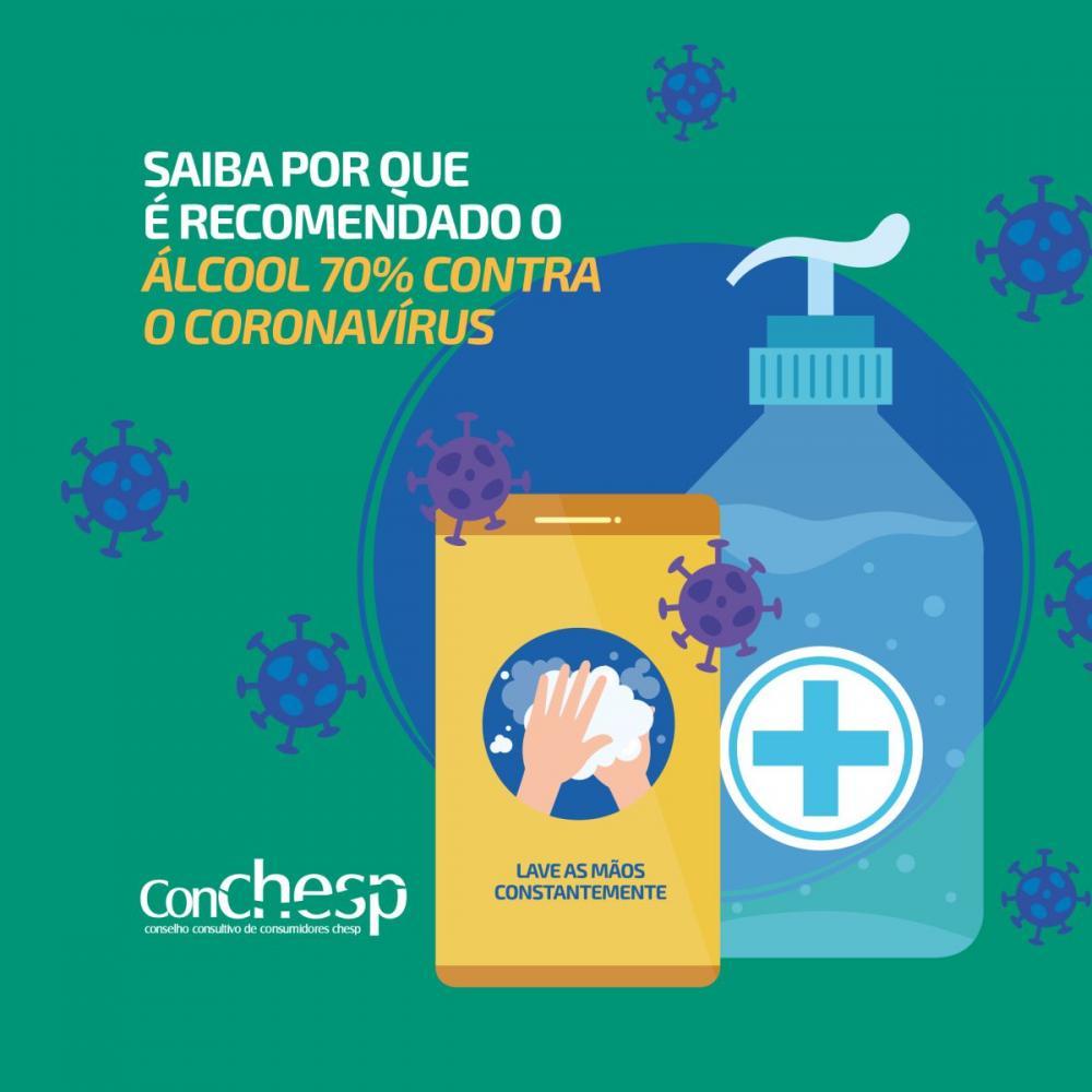 O álcool é um microbicida com características anti-séptica e desinfetante. Na concentração de 70%, o produto tem a quantidade exata de água para facilitar a entrada do álcool no interior do microrganismo, seja bactéria, fungo ou vírus, como o Coronavírus. Isso porque a água, além de impedir a desidratação da parede celular externa do microrganismo, retarda a evaporação do álcool permitindo maior tempo de contato para que haja a penetração do álcool no interior do microrganismo, resultando na sua destruição.