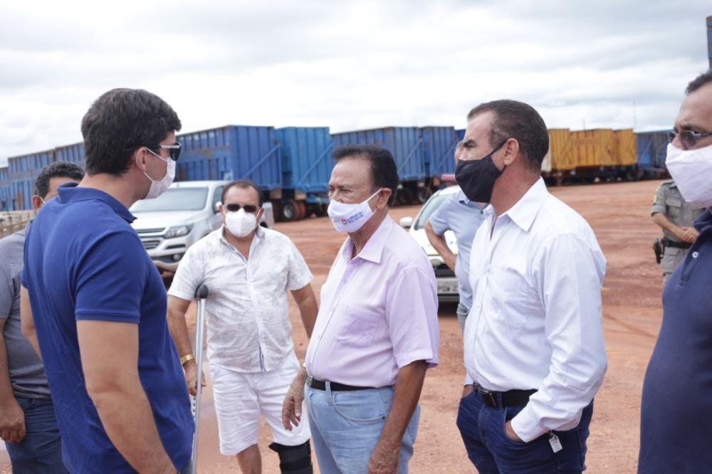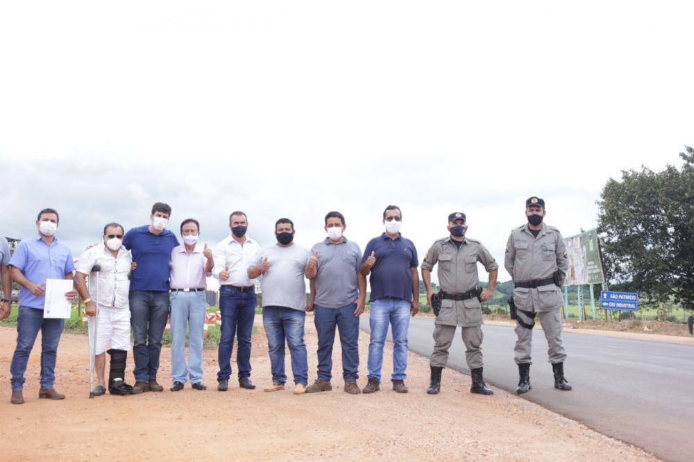 Presença do Prefeito Geraldo Reis, Vice-prefeito Celso Resende, Presidente da Câmara Cláudio Cardoso, Vereadores Walter Chiquim e Cristiano, Ex-prefeito de São Patrício Ziquinha, Celso representando a Empresa CRV e Pedro Sales Presidente da GOINFRA.