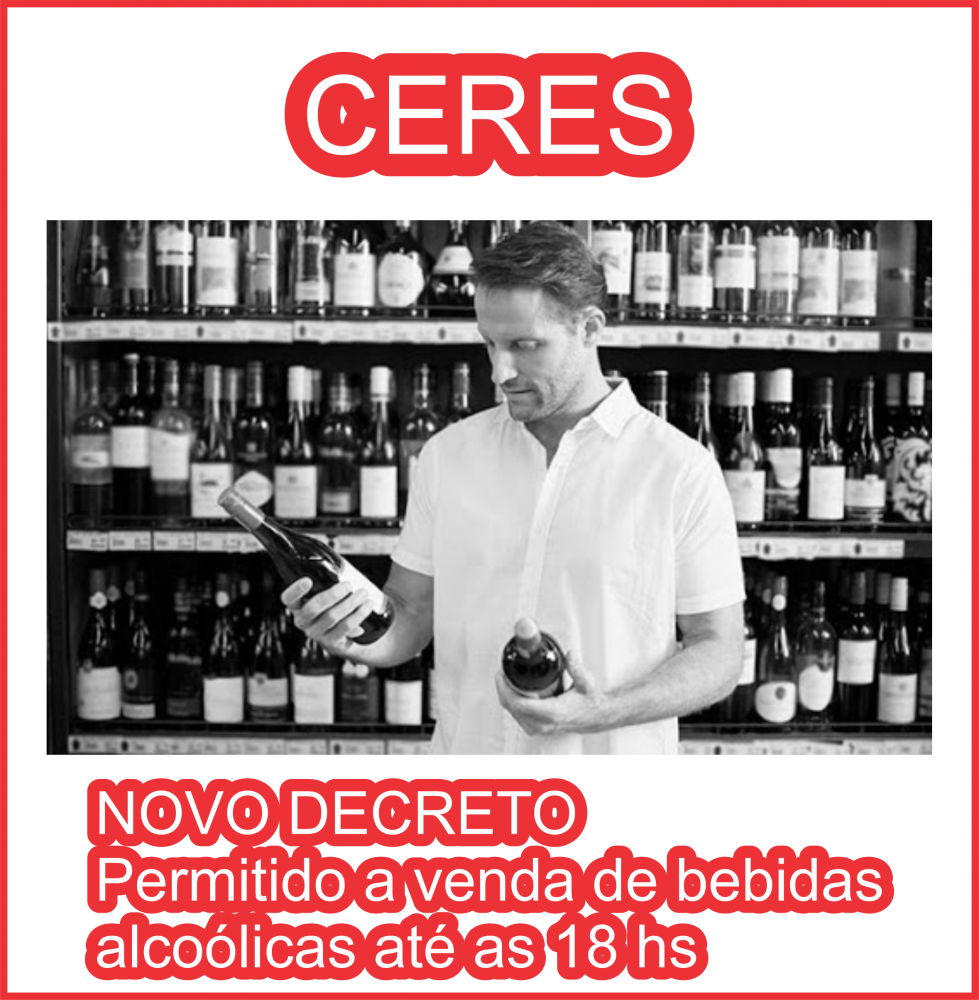 Novo Decreto em Ceres permite a venda de bebidas alcoólicas até as 18 hs.