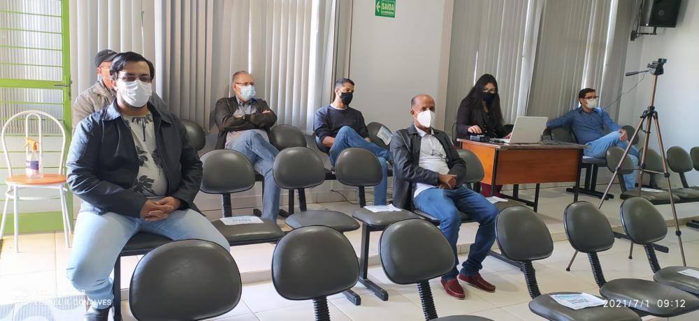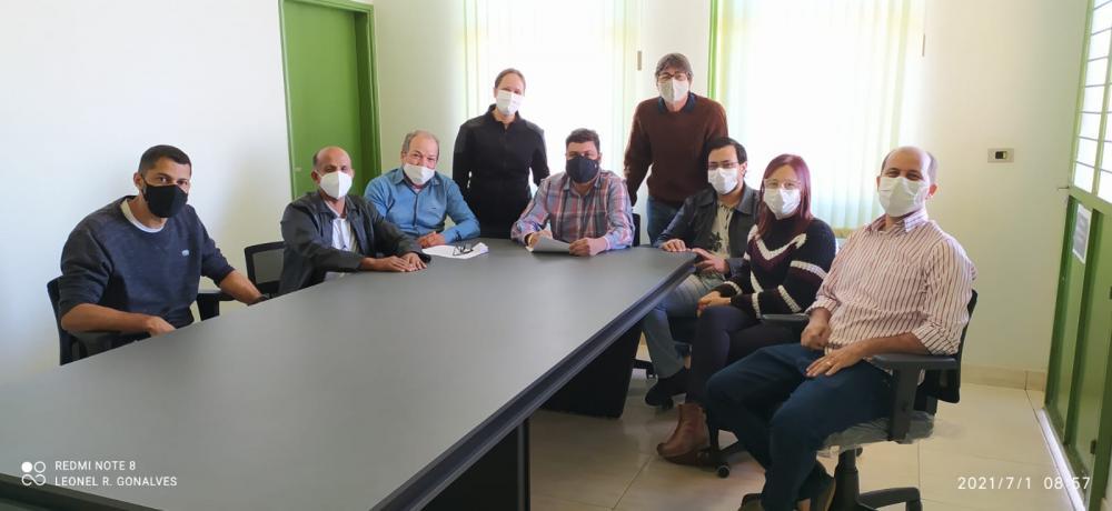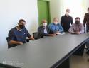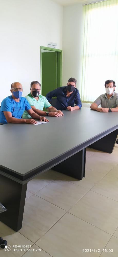 Foto 2 - Segunda Reunião no Gabinete do Prefeito Gilber Miranda. Presentes Dionatan Barros da Silva, Presidente da Associação José Carlos dos Santos, Presidente da Câmara Municipal Edson Egídio, Vereadora Jouse Ribeiro, Davi Edson, Tesoureiro da Associação Leonel Rodrigues Gonçalves, Admiria Borges e Secretário Municipal Cristiano Fernandes