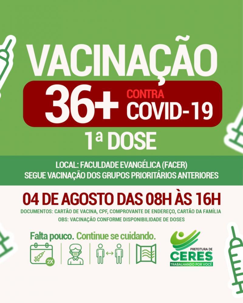 Ceres - Vacinação contra Covid 19 (População Geral 36+)