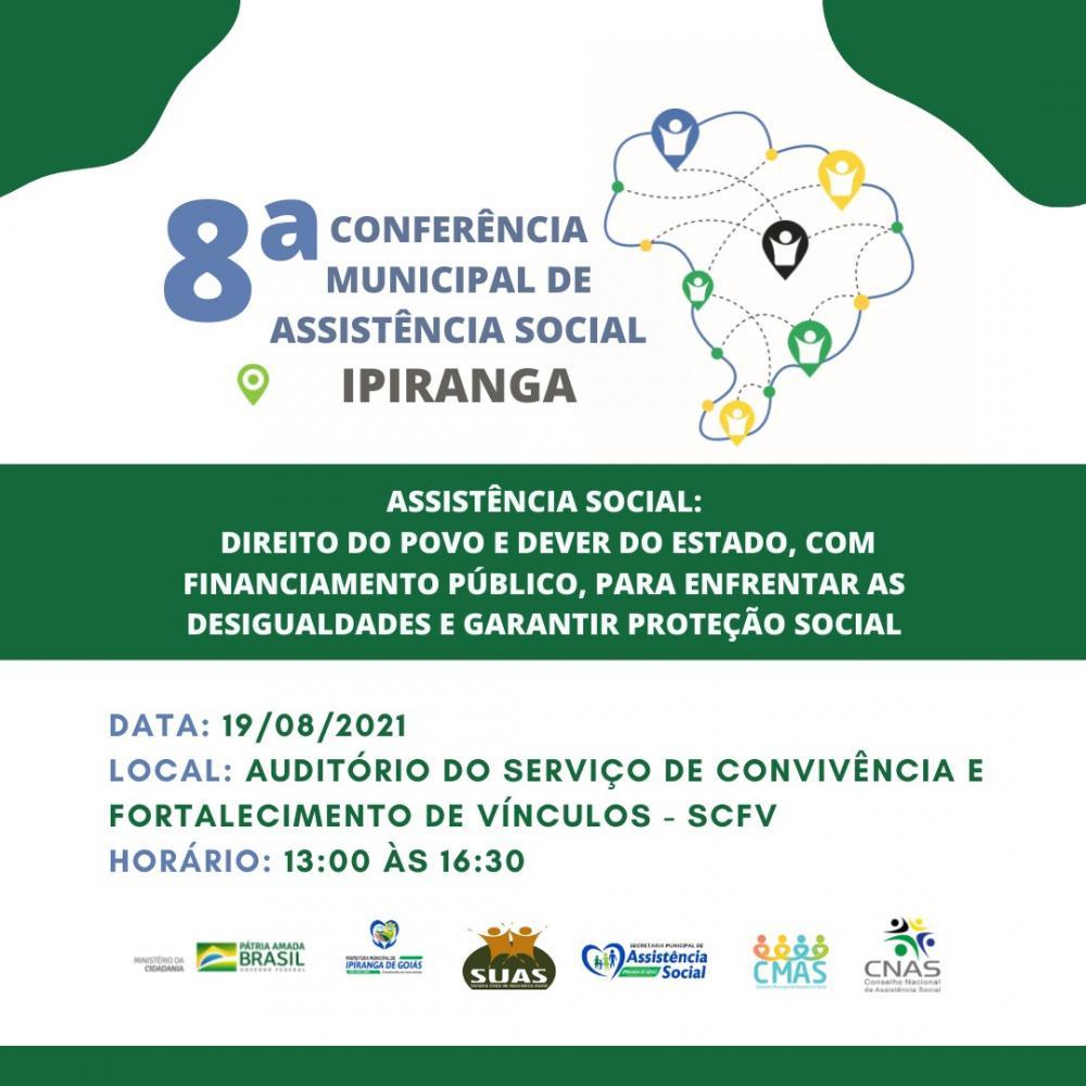 Tweet 8ª Conferência Municipal de Assistência Social de Ipiranga de Goiás Comunicado NOTÍCIAS RELACIONADAS Palestra especial com Dra. Luciana Darrot, trazendo conhecimento e motivação para mulheres que desejam empreender, crescer e transformar suas realidades. Prefeitura de Rialma informa: Evento Mulher EmpreendedoraUm momento especial de inspiração,... Convite para a 1ª Feira do Agronegócio do Vale do São Patrício Convite para a 1ª Feira do Agronegócio do Vale do São Patrício O secretário de... Câmara Municipal de Ceres realiza a 1ª Sessão Ordinária do mês de março de 2026 Câmara Municipal de Ceres realiza a 1ª Sessão Ordinária do mês de março de... Ceres promove capacitação sobre cuidados com o pé diabético e recebe R$ 10 mil para fortalecer Atenção Básica Ceres promove capacitação sobre cuidados com o pé diabético e recebe R$ 10 mil para... Mais lidas ComunicadoComunicadoCidadaniaJustiçaMeio Ambiente Comunicado Rianápolis celebra o encerramento da 9ª Copa... Comunicado Ceres - Goiás informa: 24 Edital de Convocação Comunicado 6º EDITAL DE CONVOCAÇÃO – PROCESSO SELETIVO... ConCHESP realiza a primeira reunião de 2026 e... Visita institucional fortalece a saúde de Ceres Aluguel Social com Vagas em Ceres