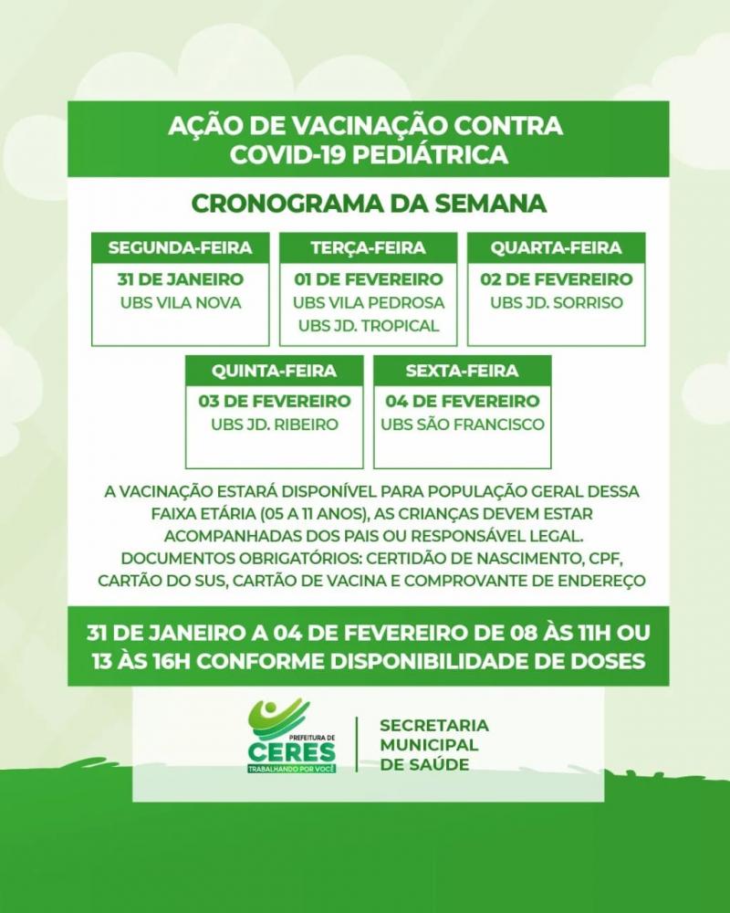 Ceres - Ação de Vacinação contra COVID-19: Pediátrica