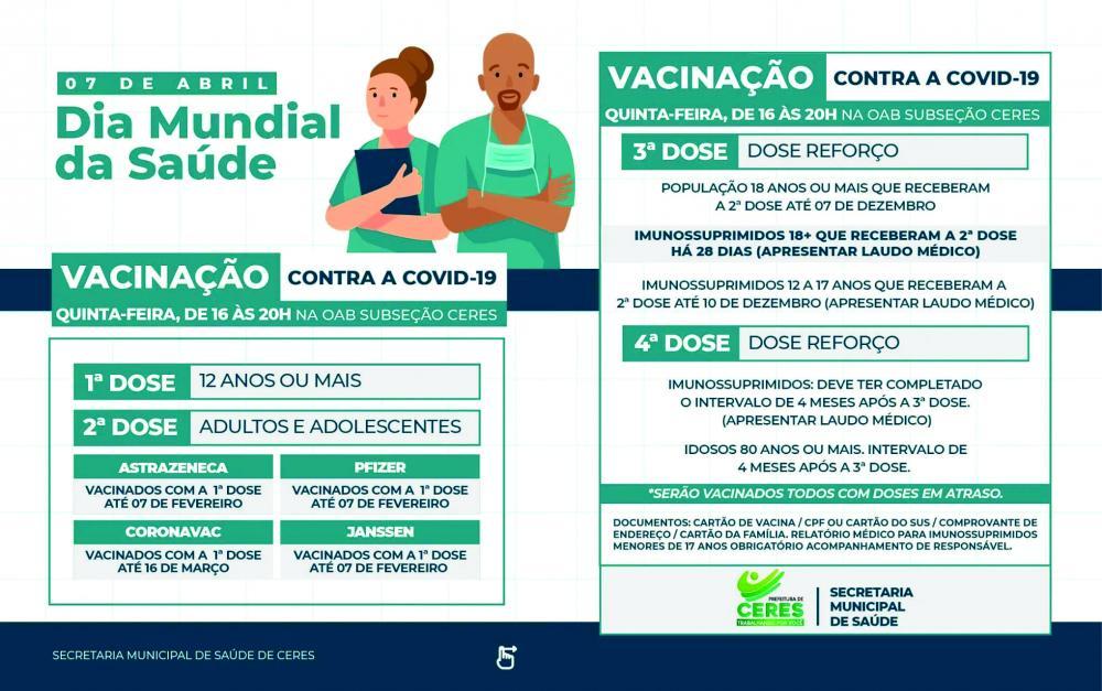 ComunicadoCeres: Vacinação contra a Covid-19 ocorrerá na quinta-feira, a partir das 16h