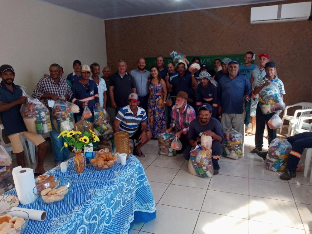 Na confraternização foi servido aos profissionais da limpeza pública, café da manhã e ainda como reconhecimento pela importância dos serviços prestados a comunidade, entregue a cada servidor uma cesta básica.