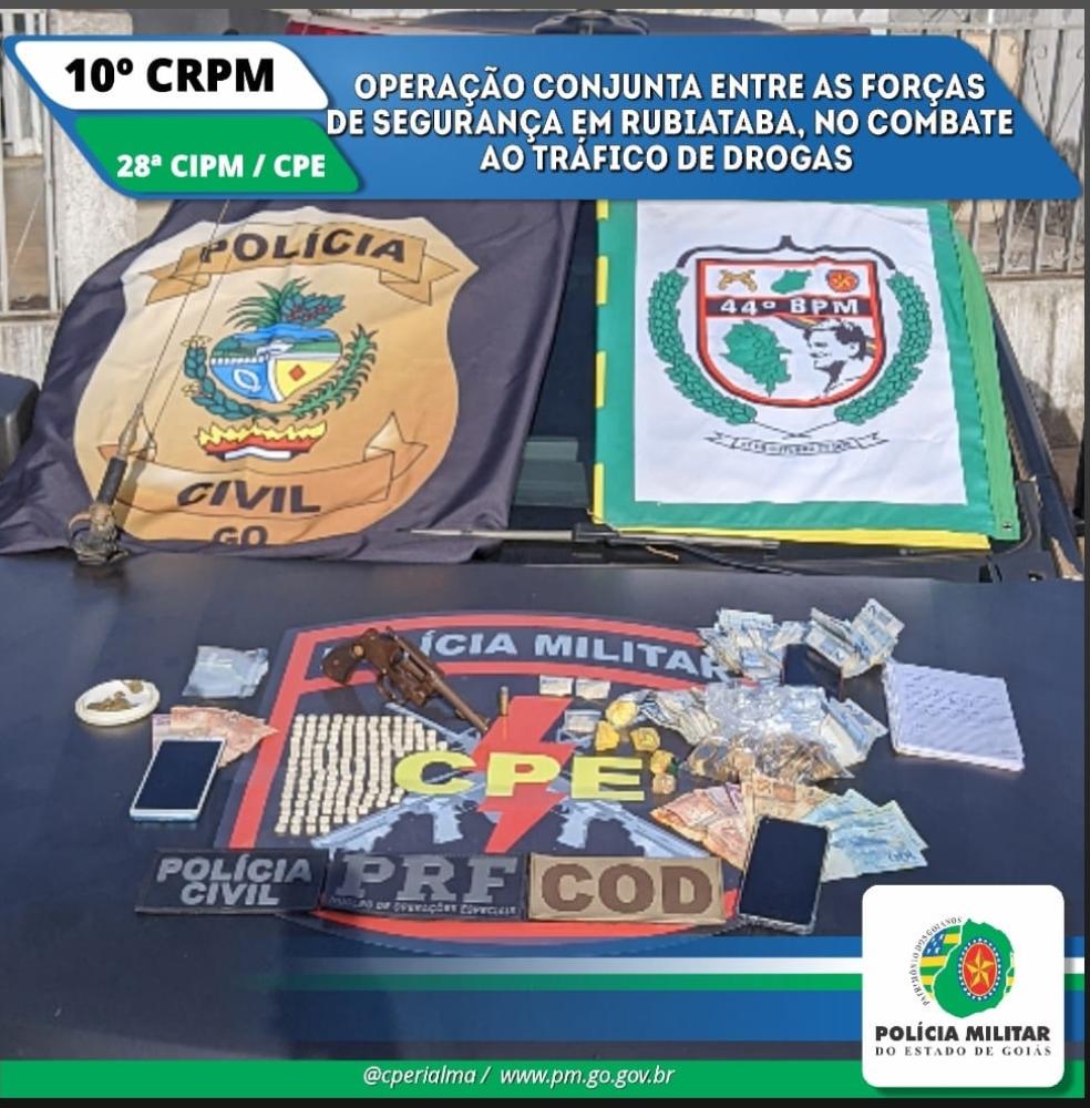 Com os detidos as equipes encontraram um revólver calibre .38, drogas sintéticas, dinheiro e veículos utilizados para o tráfico de drogas. A ocorrência foi encerrada na delegacia de Rubiataba/GO.