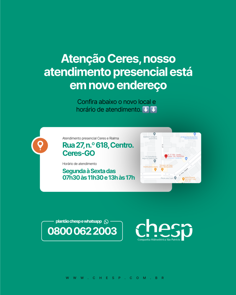 #CHESP #energia #atendimento #comunicado #solicitações #contatos #energiaeletrica #rialma #ceres #goias