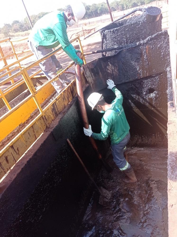 A usina fez a limpeza das caixas separadoras (SAO). A ação, que segue um cronograma trimestral, melhora a eficiência da mesma. Todo o resíduo retirado foi encaminhado para a destinação correta.