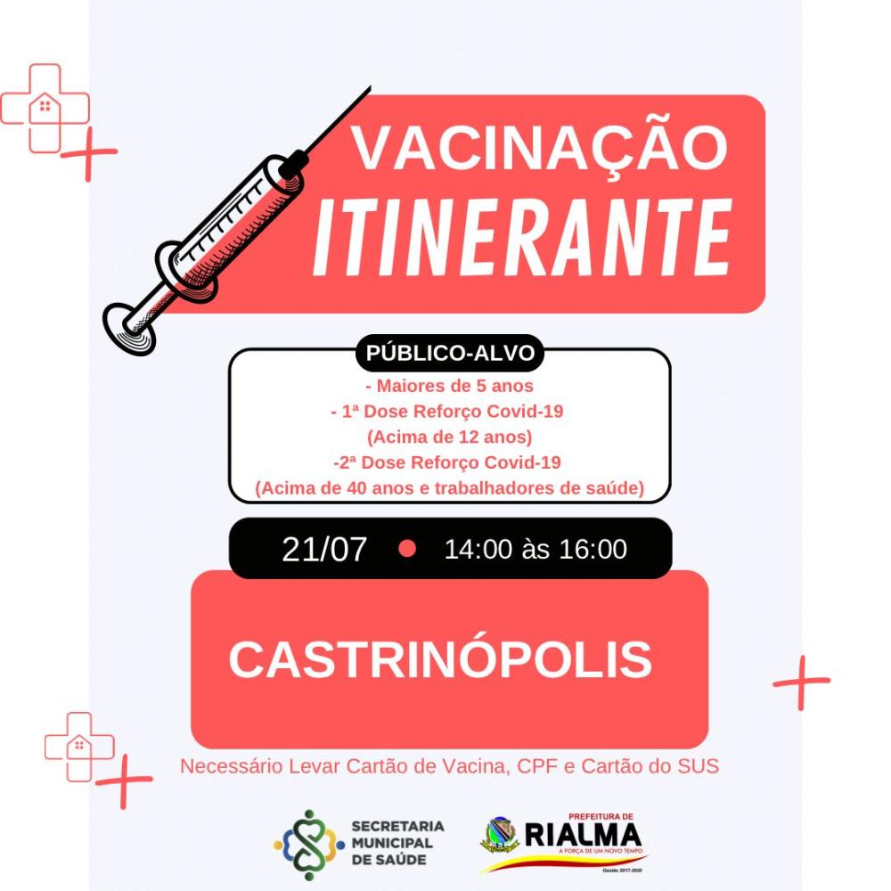 Tweet rialma - Vacinação Comunicado NOTÍCIAS RELACIONADAS Palestra especial com Dra. Luciana Darrot, trazendo conhecimento e motivação para mulheres que desejam empreender, crescer e transformar suas realidades. Prefeitura de Rialma informa: Evento Mulher EmpreendedoraUm momento especial de inspiração,... Convite para a 1ª Feira do Agronegócio do Vale do São Patrício Convite para a 1ª Feira do Agronegócio do Vale do São Patrício O secretário de... Câmara Municipal de Ceres realiza a 1ª Sessão Ordinária do mês de março de 2026 Câmara Municipal de Ceres realiza a 1ª Sessão Ordinária do mês de março de... Ceres promove capacitação sobre cuidados com o pé diabético e recebe R$ 10 mil para fortalecer Atenção Básica Ceres promove capacitação sobre cuidados com o pé diabético e recebe R$ 10 mil para... Mais lidas ComunicadoComunicadoCidadaniaJustiçaEsporte Comunicado VOCÊ TEM UMA IDEIA… MAS ELA AINDA NÃO VIROU... Cidadania Semi Final da 9ª Copa Regional de Futsal de... Comunicado Rianápolis celebra o encerramento da 9ª Copa... 6º EDITAL DE CONVOCAÇÃO – PROCESSO SELETIVO... ConCHESP realiza a primeira reunião de 2026 e... Ceres - Goiás informa: 24 Edital de Convocação