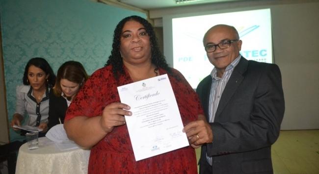 Nesta quinta-feira (26/06) no Centro Cultural de Ceres, a Pedagoga do PRONATEC Helena Maria, Sandra Iramar, representando o Conselho Escolar da Comunidade Ceresina Ivânia Maria Barreto, Secretário Municipal de Educação Professor Alcino César, Diretora do CEPC, coordenadora dos Cotec´s do Bolsa Futuro e Coordenadora de Unidade do PRONATEC Cynara Oliveira, Prefeita de Ceres Maria Inês (PT), fizeram a entrega de certificados a mais de trezentos jovens nas áreas de; Auxiliar de pessoal; Artesão em Bordado a mão; Balconista de Farmácia; Cuidados Infantil; Inglês Aplicado a Serviços Turísticos, Inglês Intermediário; Montador e Reparador de Computadores; Operador de Computador, entre outros.