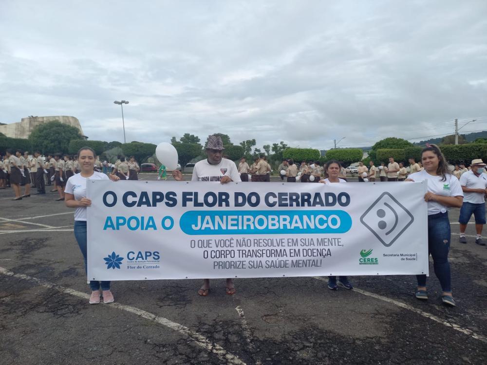 Presente na caminhada Janeiro Branco, o Prefeito de Ceres Edmario Barbosa, a Secretária Municipal de Saúde Majuery Seabra, Secretário Municipal de Trânsito Salvador Braga, Vereadora Elian Bernardete, Agentes da Saúde, Corpo de Bombeiros, Polícia Militar e colaboradores municipais.