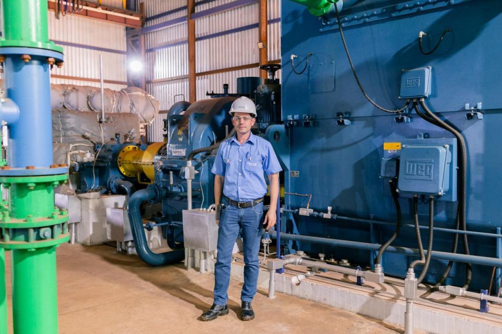 Segundo o Gerente Industrial da usina, Ricardo Moraes de Castro Andrade, o novo conjunto turbo gerador da TGM/WEG é do tipo reação, que é uma evolução em relação às antigas turbinas de ação pura. “Trata-se de uma máquina muito mais econômica, chegando a valores de 25% de eficiência. Isso significa dizer, que nos preparamos para fazer mais energia, com menos uso de recursos, seja ele combustível, água e todos outros gastos diretos e indiretos”, pontua.