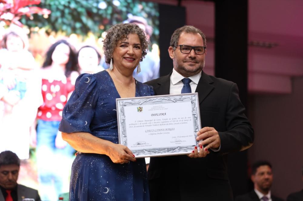 CidadaniaNesta quinta-feira 31 de maio, no Centro Cultural, a Câmara Municipal de Ceres, realizou um Cerimônial para a entrega do Diploma Mulher Ceresina "Gestão 2023", permitida pelo decreto legislativo 001/2010.