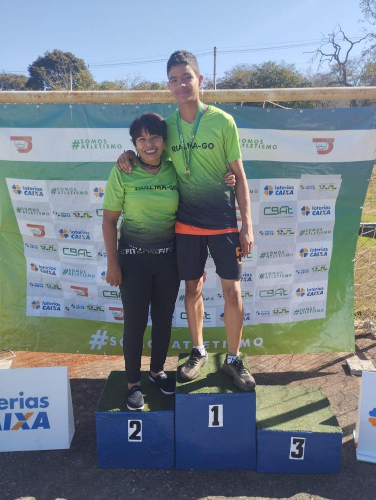 Ele treina no projeto de Atletismo da Prefeitura Municipal de Rialma tendo como técnica a Professora de Educação Física Helaine Pereira.