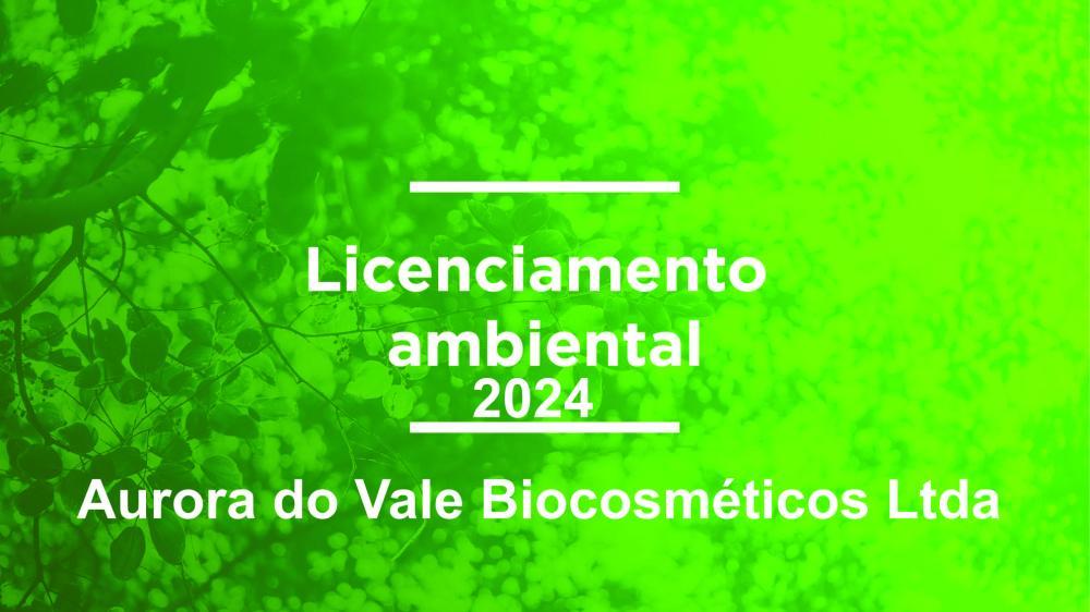 ComunicadoA Empresa Aurora do Vale Biocosméticos Ltda., CNPJ 36.651.548/0001-49, torna público que a SEMMAS - Secretaria Municipal de Meio Ambiente e Saneamento concedeu a Licença Ambiental Simplificada para a atividade Fabricação de Cosméticos, Produtos de Perfumaria e de Higiene Pessoal. Na Avenida Bernardo Sayão, Qd 02, Lote 09 e 10, Setor Sul - CEP 76.310-000, Rialma - Goiás.