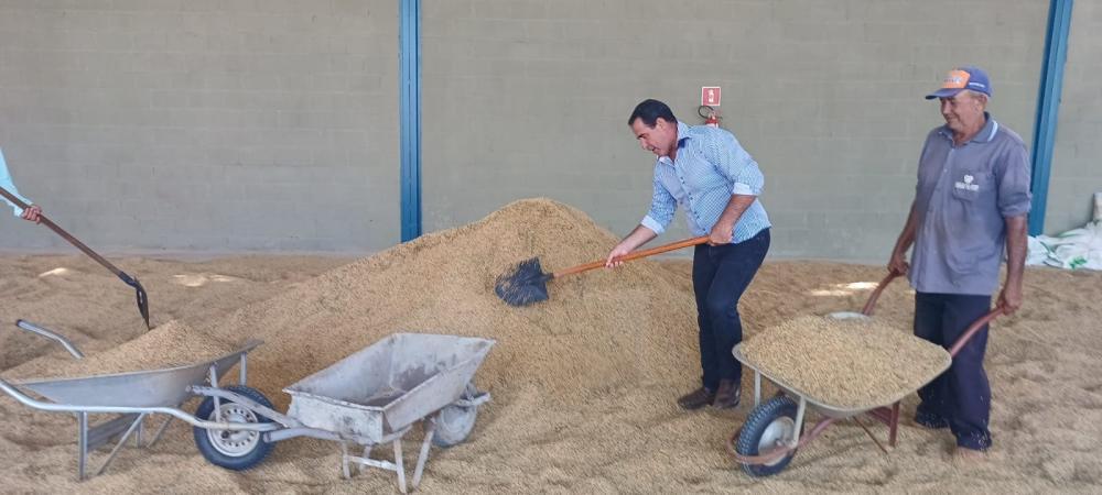 No dia 22 (sexta-feira), foi dado início a colheita de arroz pela Prefeitura de Ipiranga de Goiás por meio da Secretaria da Agricultura, comandado pelo Secretário Alexandro, popular “Tico”. Uma semana de colheita que traz muita alegria ao Gestor e Prefeito Alex Queiroz (Alex Gás). Alegria pela grande quantidade de grãos, deixando a possibilidade de atender inúmeras famílias e a Secretaria de Assistência Social do município em suas ações filantrópicas com a comunidade ipiranguense. A colheita está sendo realizado pela equipe da Secretaria da Agricultura, voluntários, agricultores e com o apoio de servidores municipais com recursos próprio do município e a estimativa é colher dois mil sacos de arroz.