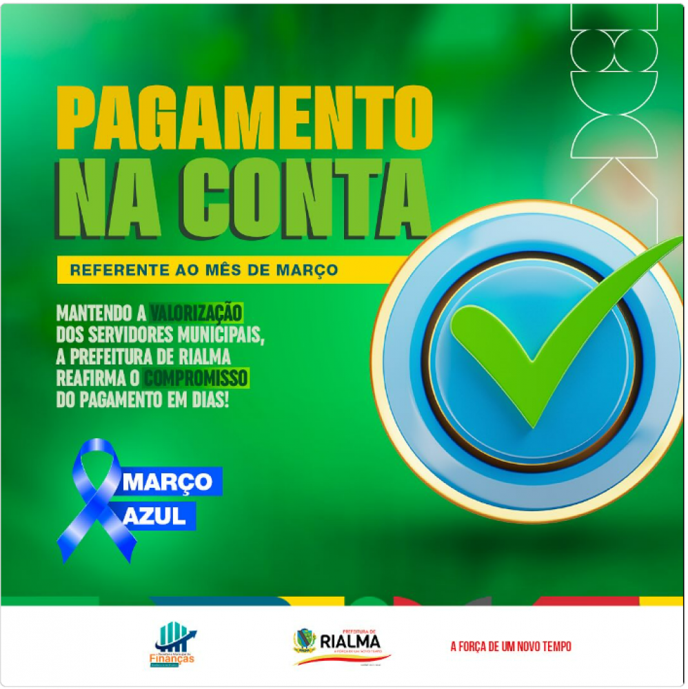 A Prefeitura Municipal de Rialma através da Secretaria de Finanças, realizou o pagamento da folha salarial dos servidores municipais dentro do mês trabalhado.