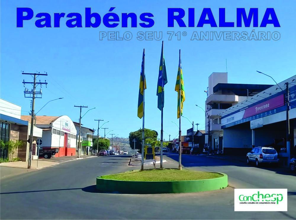 Parabéns a todos os moradores de Rialma, pela dedicação no trabalho, profissionalismo e desempenho para o crescimento e evolução dessa cidade tão amada! Parabéns Rialma pelos seus 71 anos!