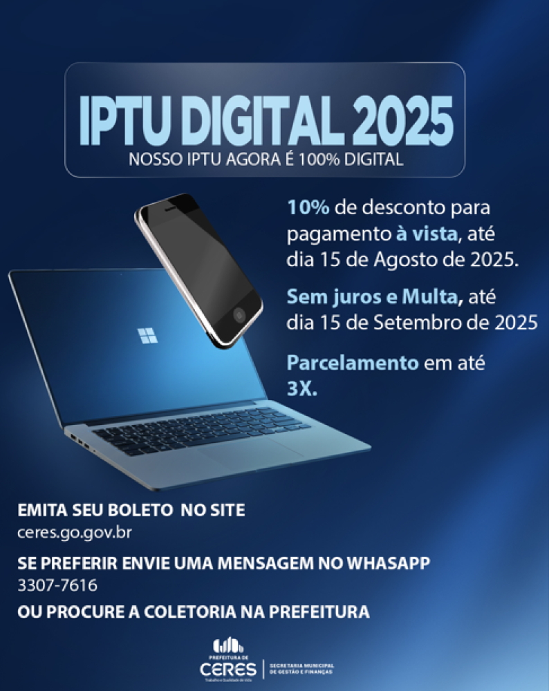 A Prefeitura de Ceres informa que o IPTU Digital 2025 já está disponível!
