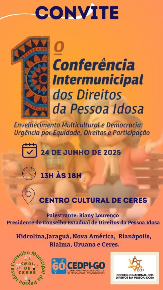 A Prefeitura de Ceres, em parceria com municípios da região, convida você para participar da 1ª Conferência Intermunicipal dos Direitos da Pessoa Idosa!