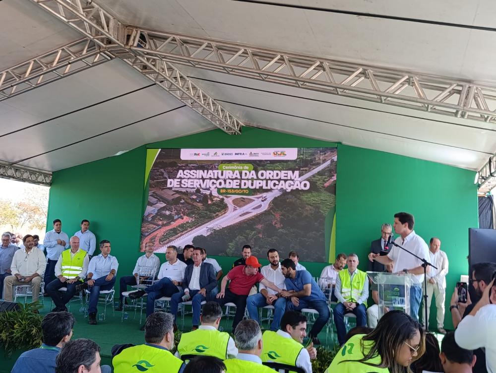 Na oportunidade, foi apresentado um vídeo abordando os trabalhos iniciados pela Ecovias e dados sobre a duplicação da rodovia. Ainda dado a palavra a todas autoridades e logo após foi assinado a ordem de serviço de Duplicação da BR 153 no estado de Goiás e Tocantins.