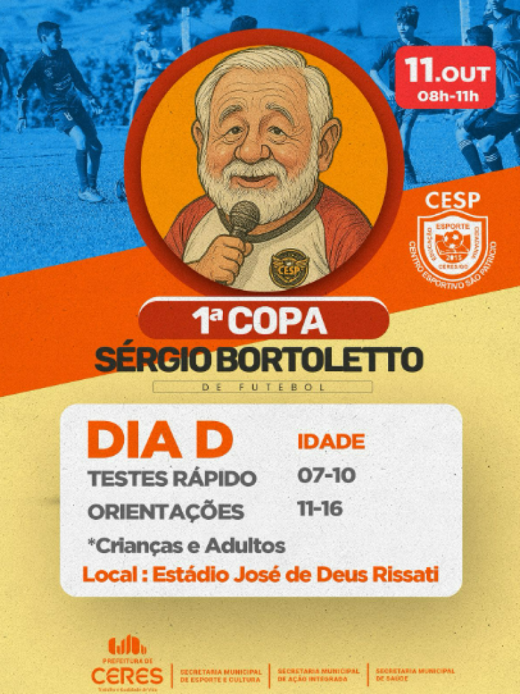 Durante o evento, também teremos o Dia D da Saúde, com testes rápidos e orientações voltadas para crianças e adultos, realizados pela Secretaria de Saúde de Ceres.
