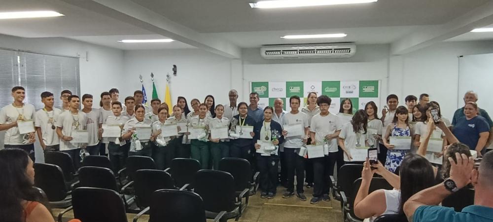 A medalha de Ouro, a Diretora Administrativo-Financeira da CHESP, Carolina de Podestá Martin Santana entregou para o aluno Samuel Bernardes Faria do Colégio Estadual Zico Monteiro de Uruana. Carolina parabenizou a todos pela participação. (...) – “Parabéns a todos os alunos e às escolas participantes! (...) “Cada medalha recebida hoje simboliza não apenas o resultado de um trabalho, mas também o compromisso de cada um com um futuro mais consciente e sustentável. A CHESP expressa sua profunda gratidão aos professores, coordenadores e gestores escolares e alunos, que foram fundamentais para o sucesso desta olimpíada.