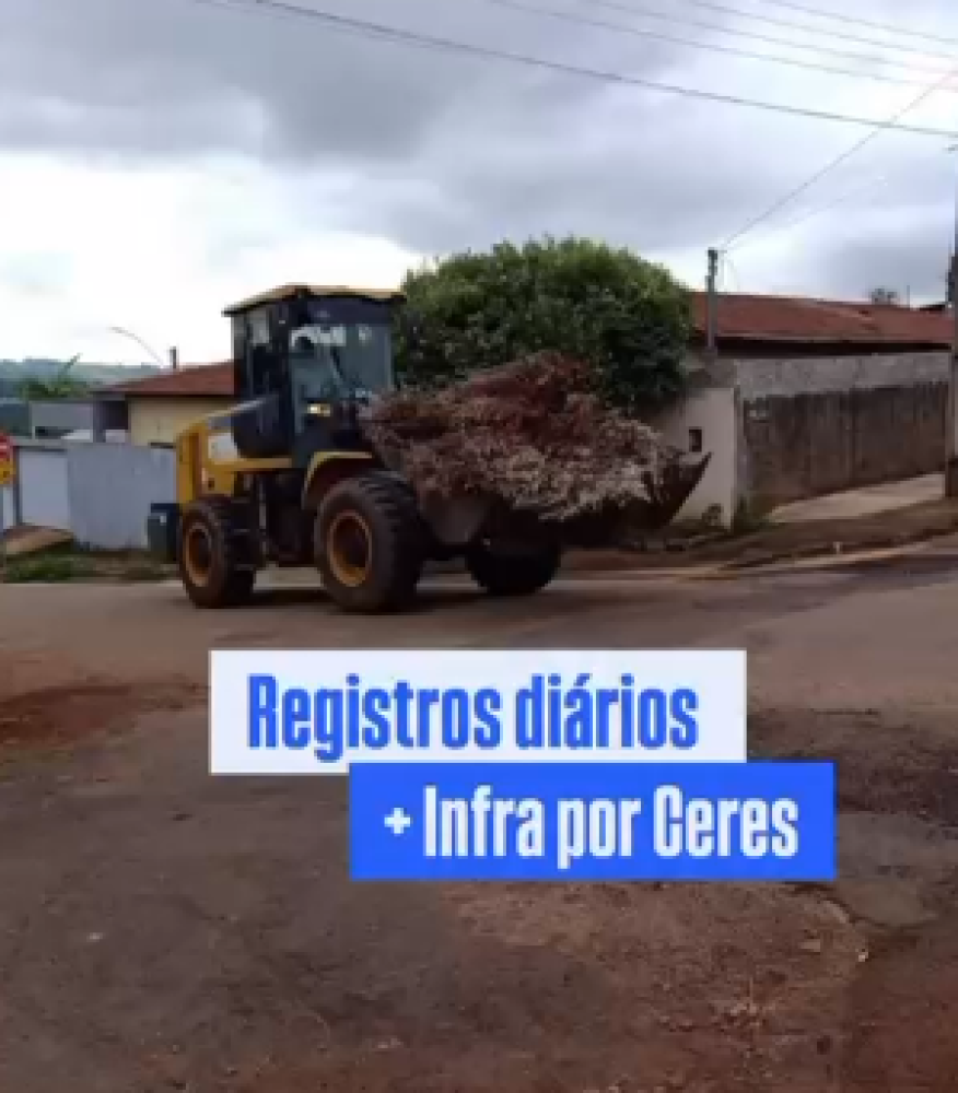 A Prefeitura Municipal de Ceres mostra uma sequência de registros da Infraestrutura realizando a coleta de galhadas e entulhos, um serviço diário, contínuo e essencial para manter Ceres organizada, segura e acolhedora.