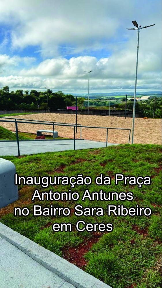 CidadaniaNesta Sexta-feira 19 de dezembro a Prefeitura Municipal de Ceres inaugurou uma bela praça no Bairro Sara Ribeiro. Denominada Antônio Antunes de Menezes Filho.
