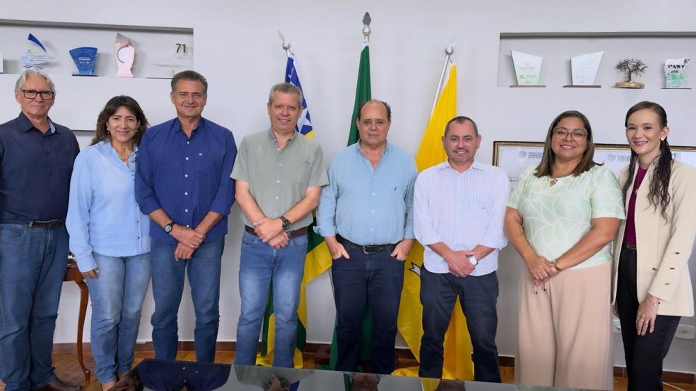 O município recebeu a visita de representantes do Governo de Goiás para uma reunião institucional com o prefeito e secretários municipais, com o objetivo de alinhar ações e discutir a participação da cidade no programa Goiás em Movimento.