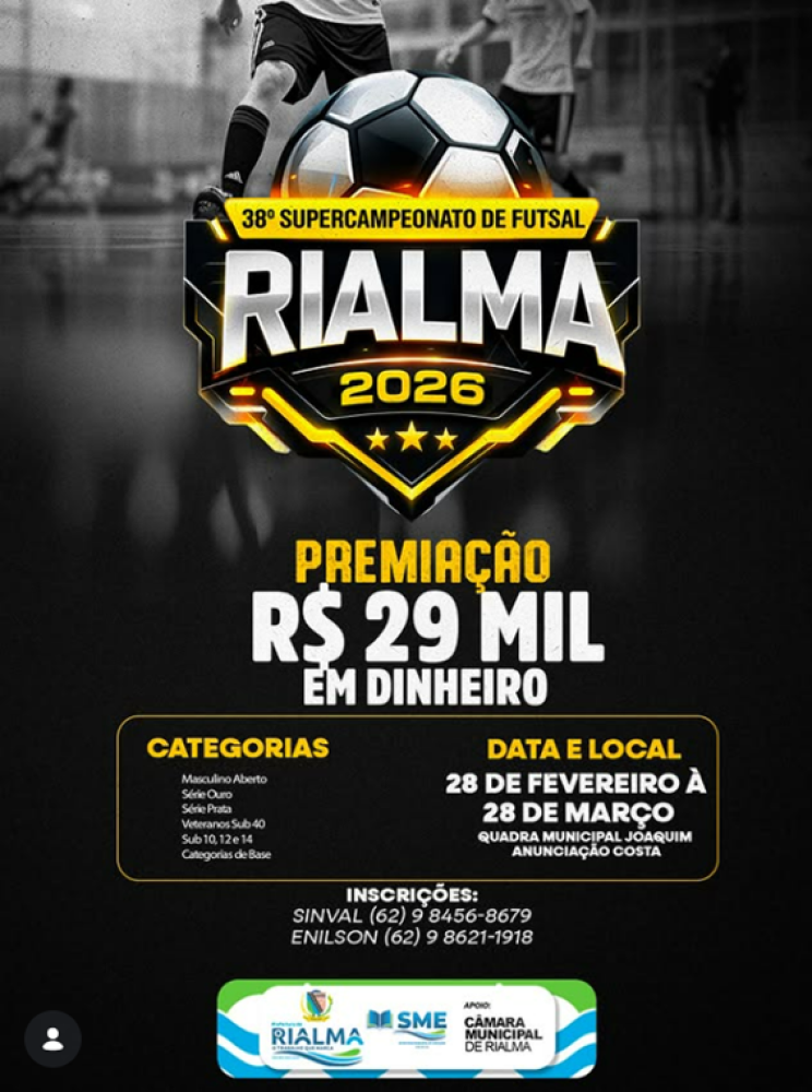 Rialma se prepara para mais uma grande celebração do esporte. O tradicional Supercampeonato de Futsal chega à sua 38ª edição, reunindo atletas, equipes e torcedores em uma competição que já faz parte da história do município.