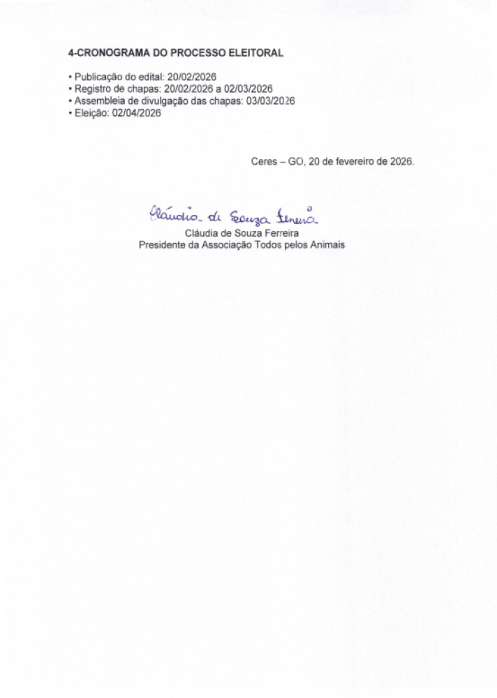 Tweet Edital de abertura do processo eleitoral, convocação de assembleia de divulgação de chapas e convocação de eleição (TOPA) Comunicado FOTOS NOTÍCIAS RELACIONADAS Palestra especial com Dra. Luciana Darrot, trazendo conhecimento e motivação para mulheres que desejam empreender, crescer e transformar suas realidades. Prefeitura de Rialma informa: Evento Mulher EmpreendedoraUm momento especial de inspiração,... Convite para a 1ª Feira do Agronegócio do Vale do São Patrício Convite para a 1ª Feira do Agronegócio do Vale do São Patrício O secretário de... Câmara Municipal de Ceres realiza a 1ª Sessão Ordinária do mês de março de 2026 Câmara Municipal de Ceres realiza a 1ª Sessão Ordinária do mês de março de... Ceres promove capacitação sobre cuidados com o pé diabético e recebe R$ 10 mil para fortalecer Atenção Básica Ceres promove capacitação sobre cuidados com o pé diabético e recebe R$ 10 mil para... Mais lidas ComunicadoComunicadoCidadaniaJustiçaEsporte Comunicado VOCÊ TEM UMA IDEIA… MAS ELA AINDA NÃO VIROU... Cidadania Semi Final da 9ª Copa Regional de Futsal de... Comunicado Rianápolis celebra o encerramento da 9ª Copa... 6º EDITAL DE CONVOCAÇÃO – PROCESSO SELETIVO... EDITAL DE CONVOCAÇÃO ConCHESP realiza a primeira reunião de 2026 e...