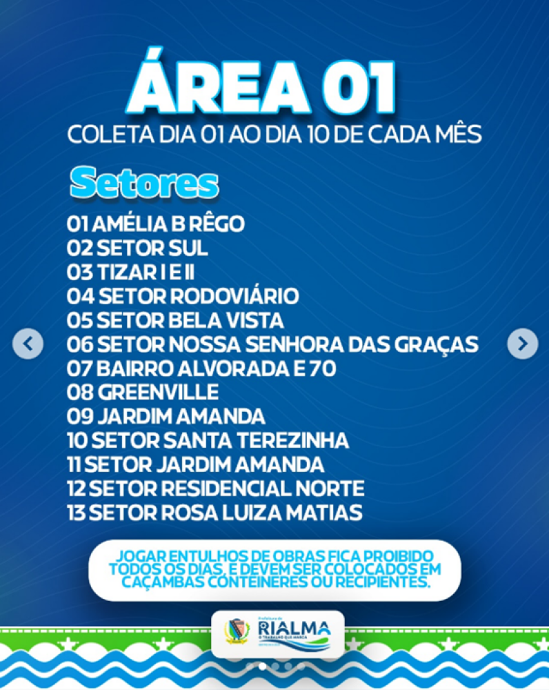 Confira todas as áreas e datas de coleta nas imagens do post.