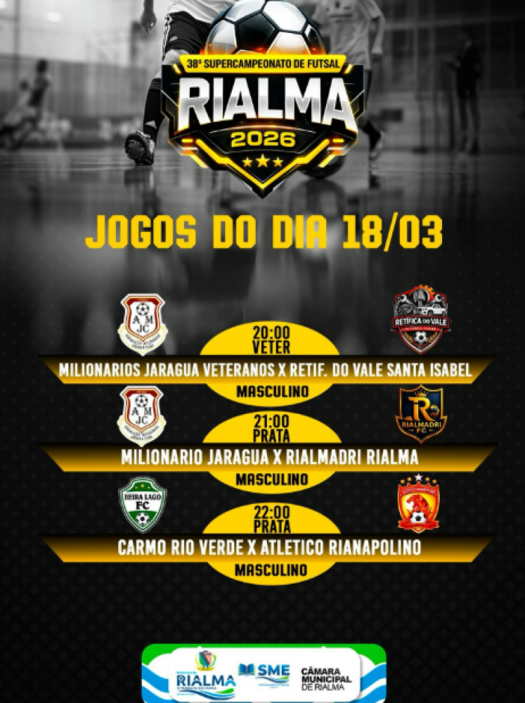O 38º Supercampeonato de Futsal de Rialma 2026 segue com mais uma rodada cheia de emoção e grandes confrontos!