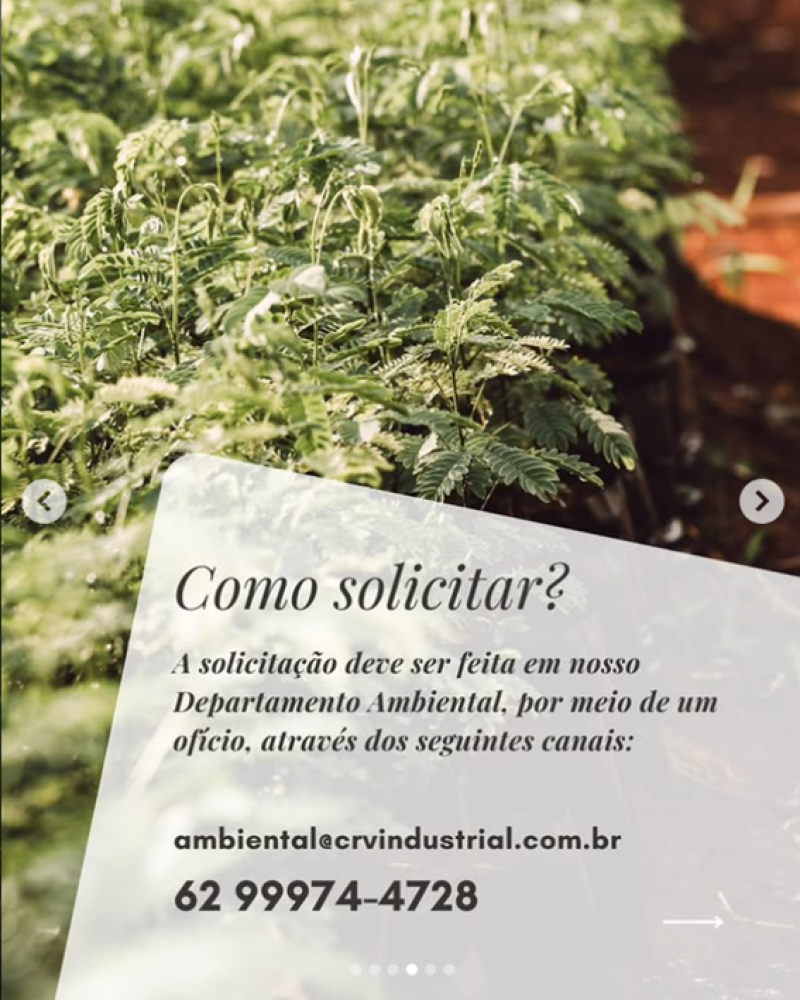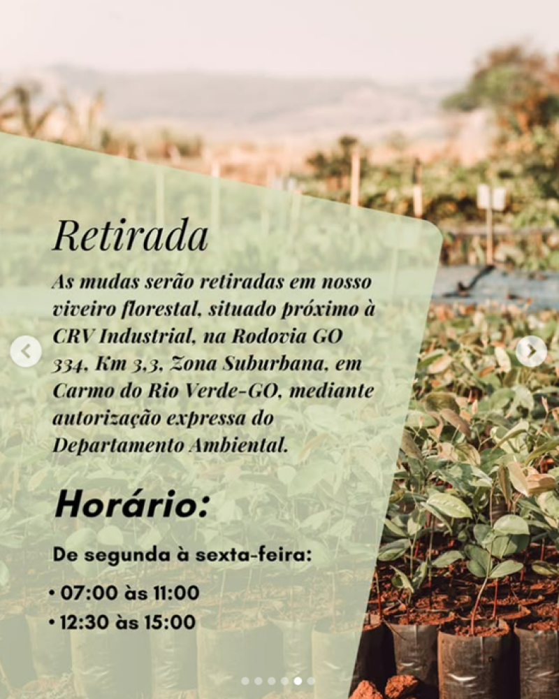 Tweet COMUNICADO – DOAÇÃO DE MUDAS Comunicado CRV Industrial informa: COMUNICADO – DOAÇÃO DE MUDAS FOTOS NOTÍCIAS RELACIONADAS Por mais um ano, a CHESP está entre as melhores distribuidoras de energia do Brasil! A CHESP informa: Por mais um ano, a CHESP está entre as melhores distribuidoras de energia do Brasil!De... Hospital Municipal de Rialma, segue avançando para oferecer mais qualidade de vida à nossa população. A Prefeitura de Rialma por meio da Secretaria Municipal de Saúde informa: No Hospital Municipal de Rialma,... Feriado da Inconfidência Atenção Ceres ! Mais lidas ComunicadoComunicadoCidadaniaCampanhaEsporte ENERGIA ELÉTRICA CHESP recebe o Prêmio ANEEL de Satisfação do... Agricultura CRV Industrial entrega produção, eficiência e... Comunicado COMUNICADO – DOAÇÃO DE MUDAS ATENÇÃO, PROPRIETÁRIOS DE LOTES BALDIOS EM... Imposto de Renda para apoiar projetos com... Inicia mais uma safra na CRV Industrial.