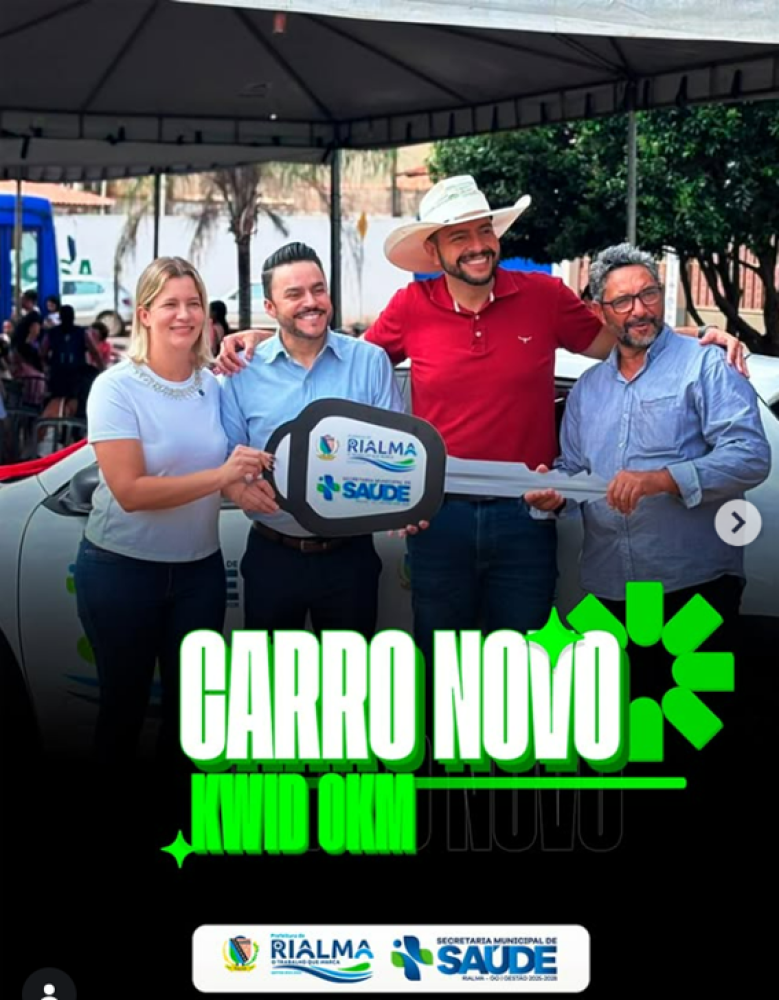 ComunicadoA Prefeitura de Rialma por meio da Secretária Municipal de Saúde de Rialma agradece ao Dr. José Machado e ao Vereador e representante Ni do Pastel pela importante parceria e pela aquisição de um novo Renault Kwid 0km para a cidade de Rialma.
