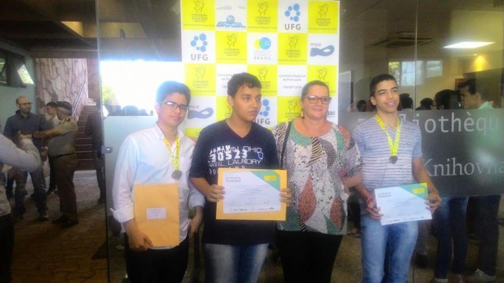 Apenas Duas Medalhas de Ouro para o Estado de Goiás, uma delas para a cidade de Rianápolis, muito bem representada pelo aluno Vinícius Domingos Brás e ainda com muito valor a cidade foi contemplada com mais duas Medalhas de Pratas sendo uma para o aluno Dante Hisamitsu Satake Neto e o aluno Diego Brito Branquim. Todos alunos do Colégio Estadual Grincon e Silva. Méritos para a Professora Danyela Peixoto Magalhães.