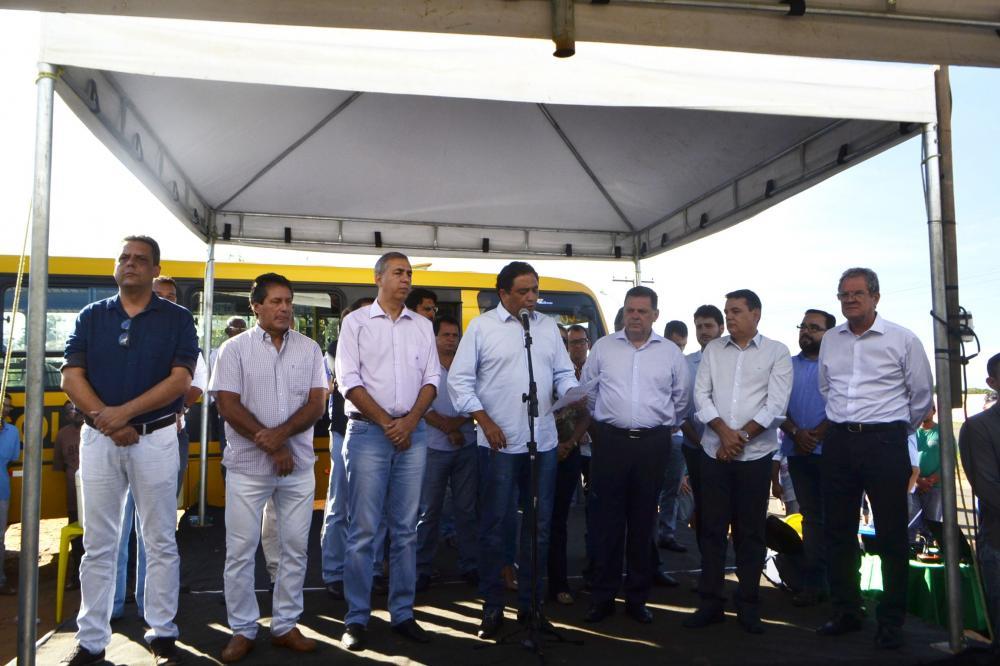 O Governador apresentou benefícios públicos entregues na região; rodovia que liga Uruana a Itapuranga; a reconstrução da Rodovia GO-230 que liga Uruana a Uruita, Itaguaru, Itaguari e Taquaral até a GO 070; Uruana à Uruceres e à BR 153; agora uma obra de aproximadamente R$ 6.000.000,00. A GO-154, que liga Uruana a Carmo do Rio Verde. Mostrou estar cumprindo rigorosamente com as obrigações estaduais. Falou da importância que representa a estrada a todos. (...) “ – essa estrada é importante a todos os cidadãos. Aquele que tem que trazer seu filho, o idoso para o hospital, os universitários, os estudante. Todos precisam de uma estrada boa. Nós estamos reconstruindo em Goiás mais de 6.000 kms de rodovias que estavam estragadas. Não paramos frente a maior crise que atravessa o Brasil. O Governo de Goiás não parou, paga suas obrigações em dia. Não lembro um mês em meus quatro mandatos que um funcionário público ficou sem receber o seu salário em dia, ter ido a um supermercado e ter passado vergonha por não ter crédito. Não houve um ano que o servidor ficou sem receber o seu 13 salário no mês de seu aniversário. Fui o primeiro a implantar isso no país”. (...) “ O Prefeito Cássio tem uma angústia a respeito dos buracos que existem na cidade. Ele reconhece que essa é uma responsabilidade municipal e não estadual. Mas eu e o José Eliton desde o início, tomamos uma decisão de celebrar convênios com todos os prefeitos independente de sigla partidária. O povo não quer saber se eu sou de um partido e o prefeito de outro. O povo vive na cidade e quer melhorias. Uma compreensão que eu, o José Eliton, Talles Barreto e toda a equipe tem. Tem que haver parcerias e ser um governo republicano. Infelizmente o Prefeito Cássio tem um problema de uma certidão do ano 2015, que ainda impossibilita de fazer um convênio conosco. Falei com o José Eliton para que achemos uma alternativa para que possa ajudar a cidade. Já tem prefeitos que já fizeram nessa região mais de 50.000 metros quadrados de asfalto conosco neste governo”.(...)”Não está faltando dinheiro e nem boa vontade nossa” (...) o que o senhor pediu para o hospital vamos ver com o José Eliton para fazermos uma parceira”(...). Enquanto muitos estavam “choramingando” por causa da crise, estávamos estudando para ter alteridades, economizar e enxugar despesas. Hoje temos uma agenda que duvido que alguém tenha no Brasil. Todos os dias inaugurando obras importantes” (...) Enfatizou Marconi.