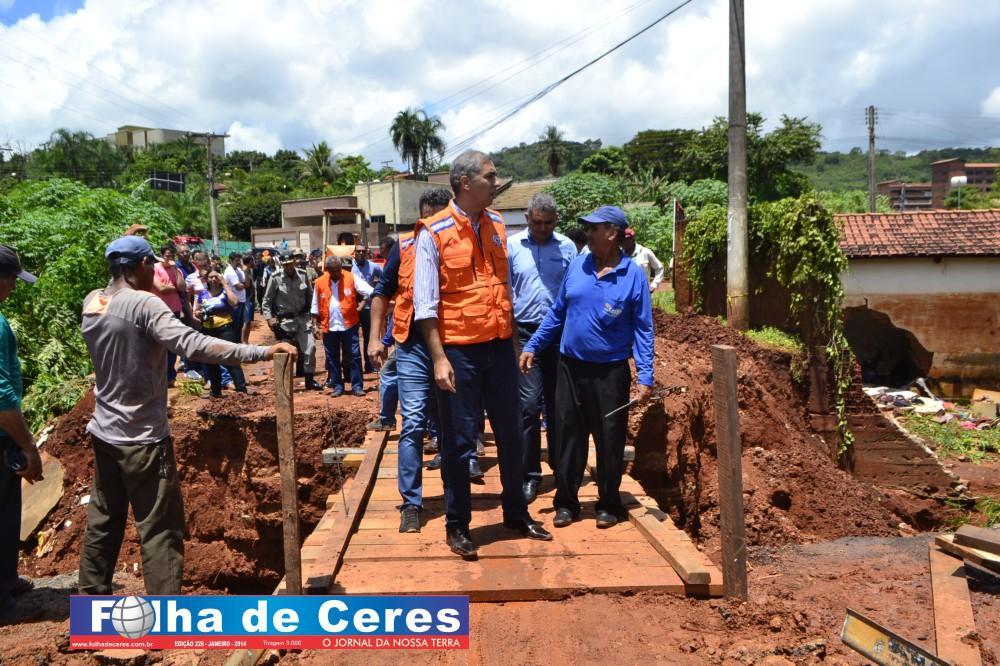 José Eliton após vistorias acompanhadas pelos prefeitos e autoridades, abriu espaço para a imprensa local e falou sobre sua preocupação e ações de apoio junto aos municípios afetados. informou que o governo será solidário aos acontecimentos, dando prioridade as famílias que foram afetadas e prejudicadas pelas chuvas. Muitas delas famílias carentes que perderam todo pouco que tinham. (...)” O Governador Marconi Perillo e eu estávamos sendo informados desde ontem pelos prefeitos Rafael e Fred de tudo que estava ocorrendo aqui. Da mesma forma da Defesa Civil e o Corpo de Bombeiros tem tido uma atenção total com essa catástrofe natural que ocorreu aqui”. (...) “Vistoriamos algumas ruas dos municípios, casas e escolas atingidas e quero agradecer muito a Defesa Civil pela atuação pronta, tanto a municipal quanto a estadual, Corpo de Bombeiros com o Major Rhevysson, Coronel Fonseca, todos atuando de maneira muito pronta e prontidão total para qualquer tipo de intervenção necessária” (...) Estou agora conversando com os prefeitos para buscar minimizar os problemas advindo dessas chuvas. Determinamos que a HAGEAB e a OVG se deslocassem para cá para atender prioritariamente as famílias que foram atingidas diretamente por essas chuvas muito acima do normal. Famílias que perderam praticamente tudo” (...) estaremos atuando com o cheque reforma. A defesa Civil e o Corpo de Bombeiro estará avaliando as estruturas dessas residências, ver se é possível que essas famílias permaneçam no lugar. Se necessário fazer a interdição. A OVG estará prestando assistência direta às famílias com as questões alimentares” (...) “ estamos discutindo as questões sobre o programa “ Goiás na frente” para auxiliar os municípios naquilo que for preciso no que se diz respeito a infra estrutura, felizmente algumas vias que foram atingidas já estão dentro do planejamento” (...) “ Algumas outras intervenções são mais complexas que envolvem obras de engenharia a exemplo de pontes, encabeçamento de pontes e investimentos maiores que diz respeito a canalização de águas, parte feito pelo Governo do Estado e parte da demanda para a Defesa Civil Nacional, com intervenções que visa investimentos de médio e longo prazo”(...). Enfatizou o Vice Governador José Eliton