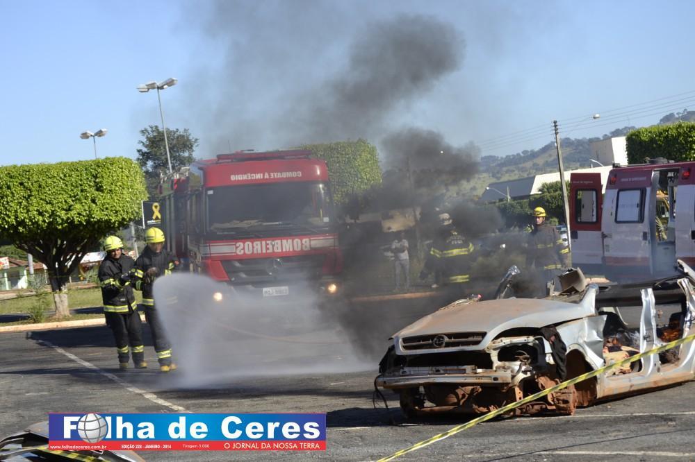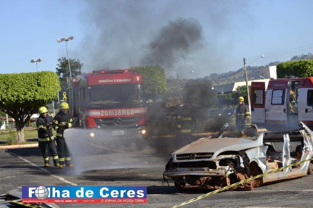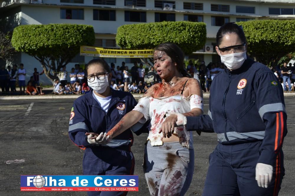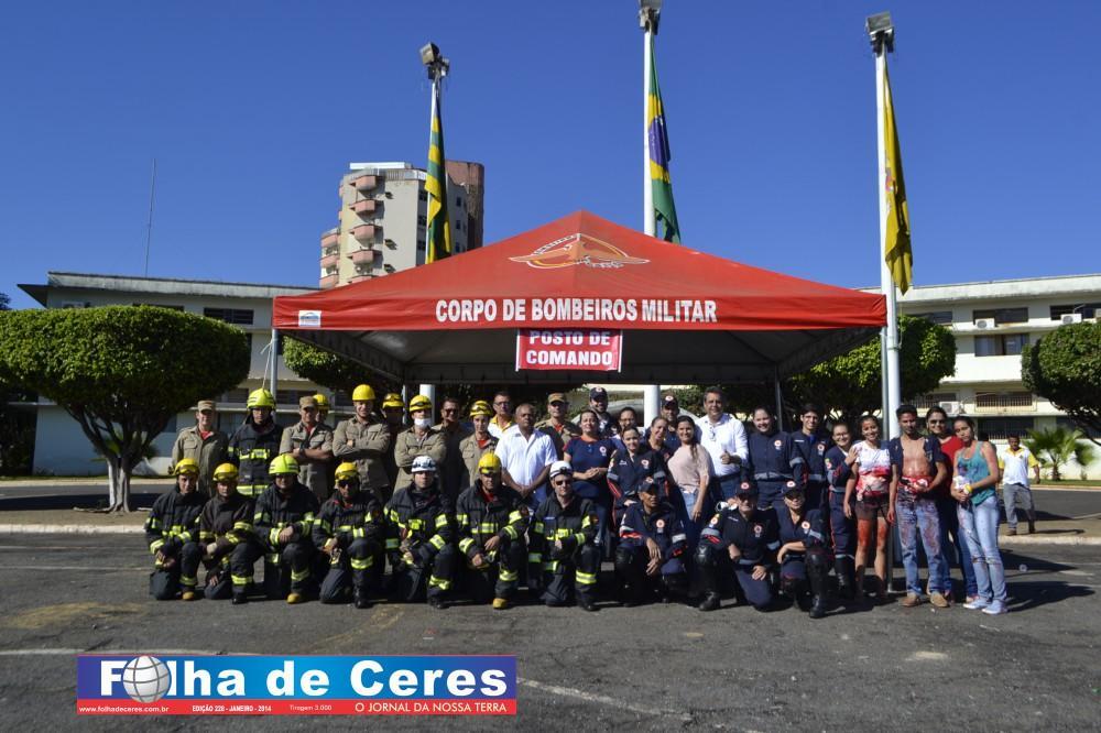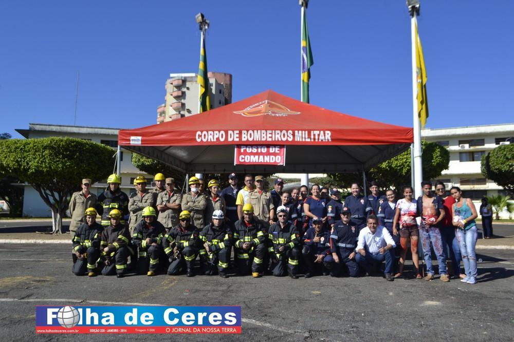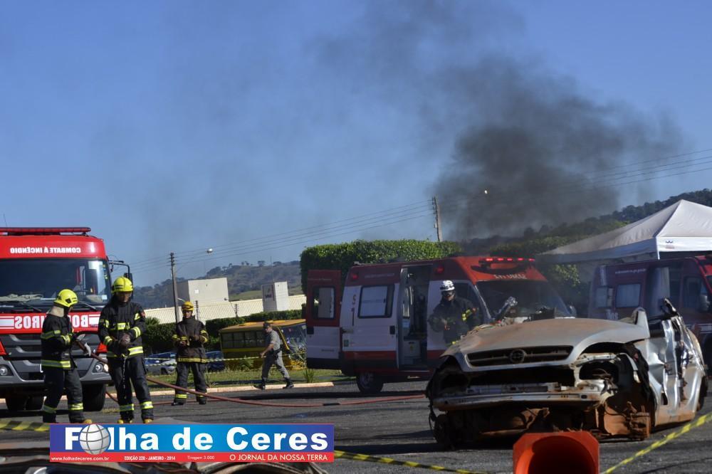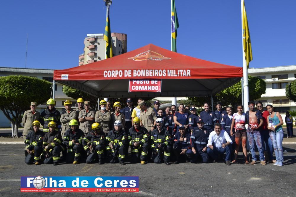 Na ação, obtiveram o apoio dos alunos de enfermagem da UEG de Ceres que fizeram uma encenação de vítimas em um acidente envolvendo um ônibus escolar e um veículo em chamas. Em todo o momento, todas as equipes trabalharam em conjunto, como se fosse um acidente verídico. Mostrando a população presente, os cuidados e maneiras de se portar frente a situação. O trabalho ágil que deve ser concluído com parcerias e sem falhas com as vítimas; a destreza na busca de ganhar tempo e salvar vidas.