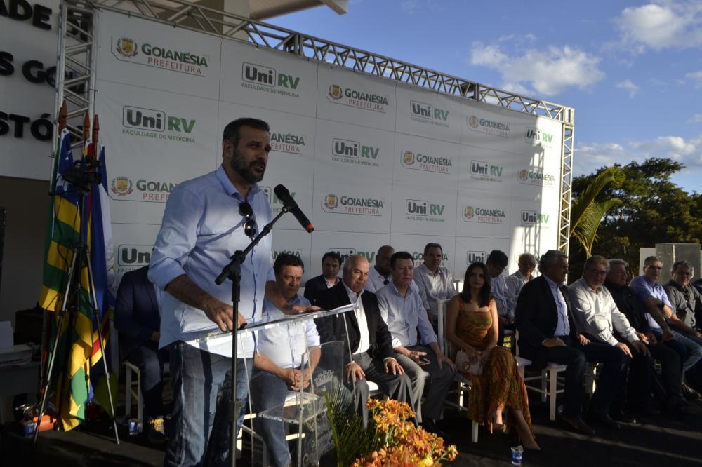 O Governador do Estado de Goiás Ronaldo Caiado, abordou a importância daquela obra e seus resultados para o bem do estado e por intermédio da Secretaria de Estado da Saúde fez a doação de trinta equipamentos hospitalares a Prefeitura Municipal de Goianésia para uso na rede municipal de saúde, atendendo o Hospital Municipal UPA e PSFs. Descerrou a placa inaugural das novas instalações da Faculdade de Medicina da Universidade de Rio Verde.